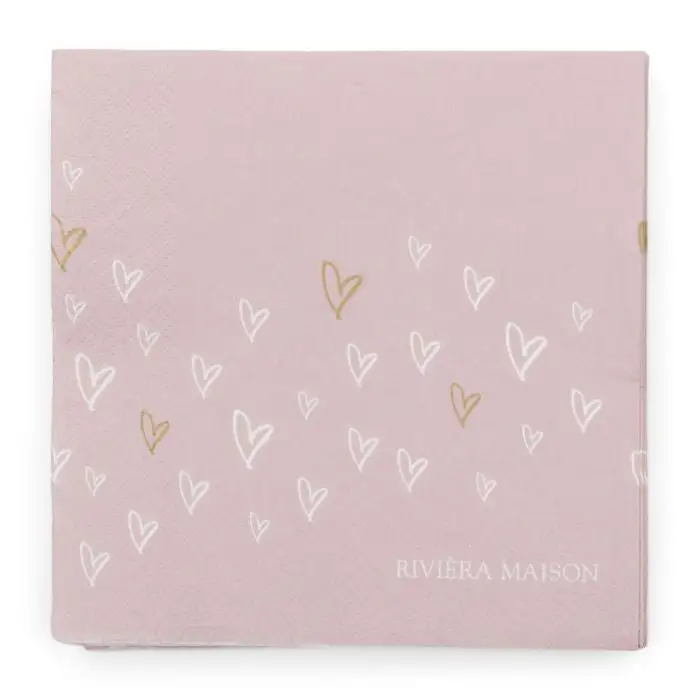 The paper napkins Lovely Hearts is a set of 24 napkins in a beautiful soft pink color. The napkins are made of several layers of paper and have a cheerful print with white and gold hearts. Available in different designs.