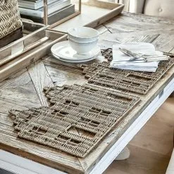 Canal houses are a recurring theme in the Rivièra Maison collection, as you’ll see in our logo and in this placemat. It’s made of hand-woven rattan with a frame allowing it to be formed with extreme precision into two characteristic facades.
