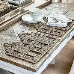 Canal houses are a recurring theme in the Rivièra Maison collection, as you’ll see in our logo and in this placemat. It’s made of hand-woven rattan with a frame allowing it to be formed with extreme precision into two characteristic facades.
