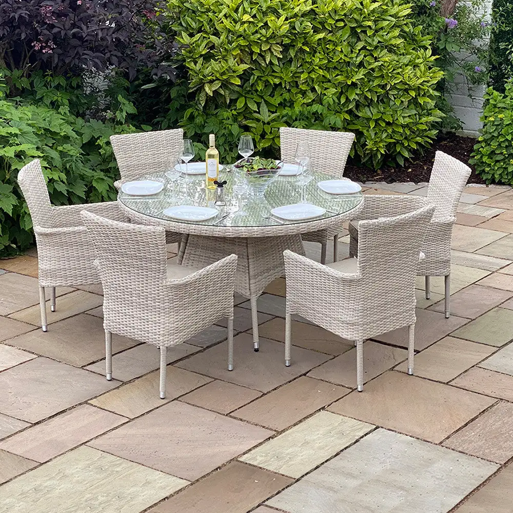The Miami Round 6-Seater Set is durable, comfortable and stylish. Relax in comfort while still looking stylish, perfect for relaxing with a cup of coffee or enjoying a meal.