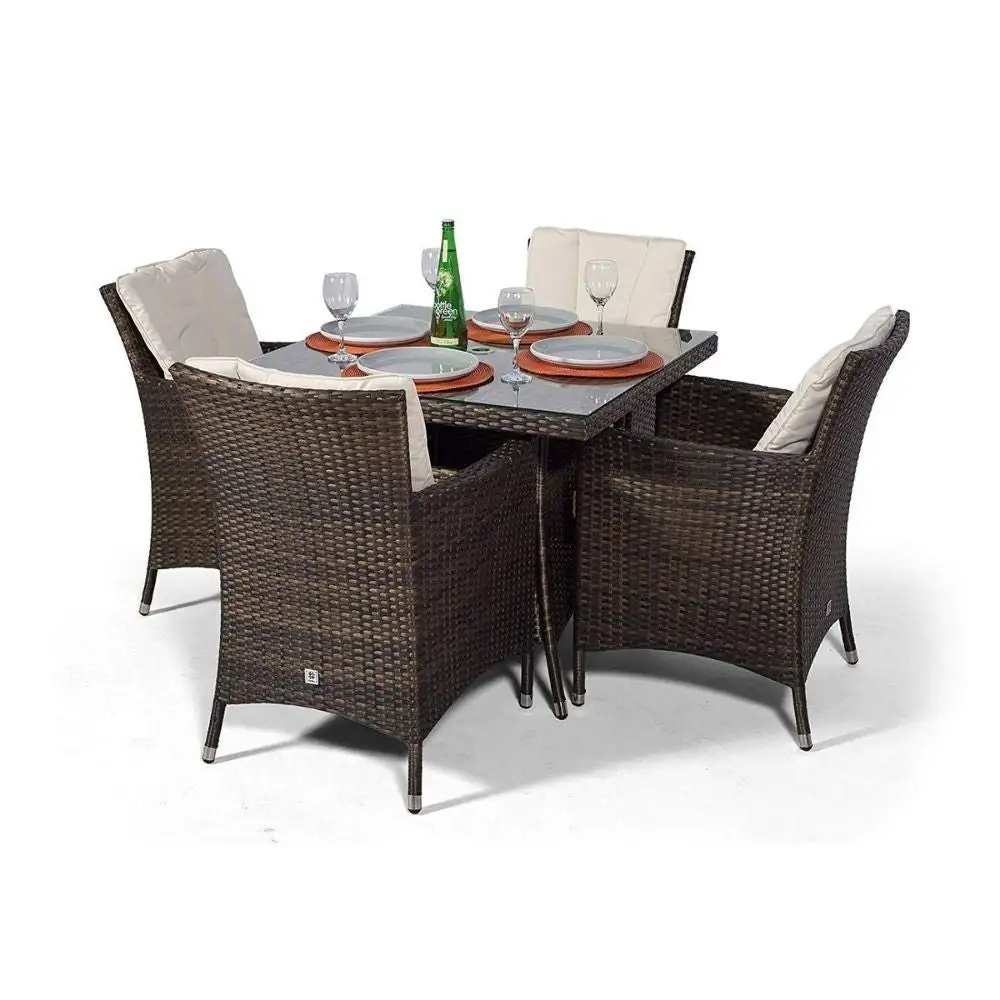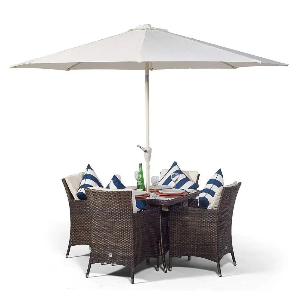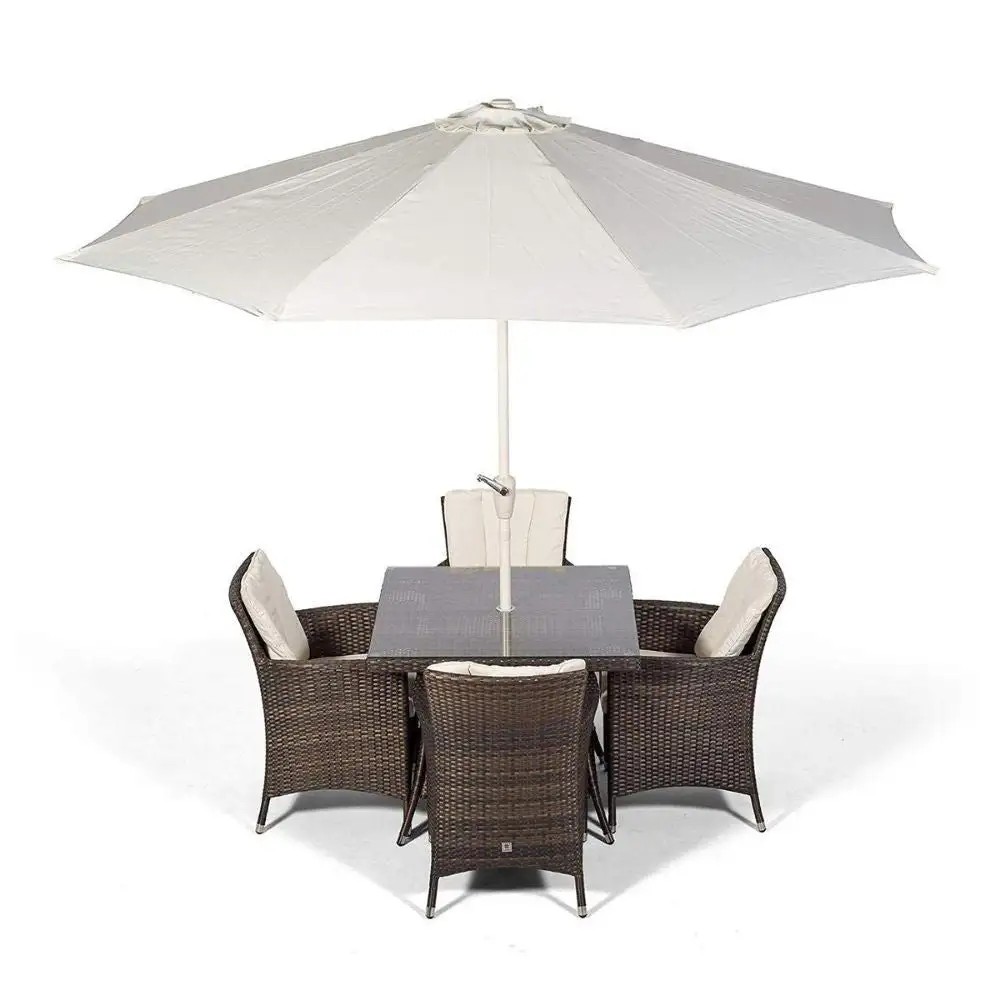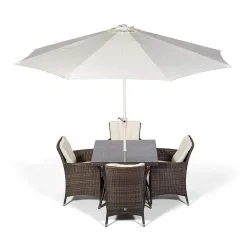 This Montreal 4 Seat Square Table Set is ideal if you want to sit back and relax during that sunny summers evening with a cold drink as it has a central hole in the table to take a parasol to ensure you can keep the sun off you and your food if it becomes just too bright and hot.