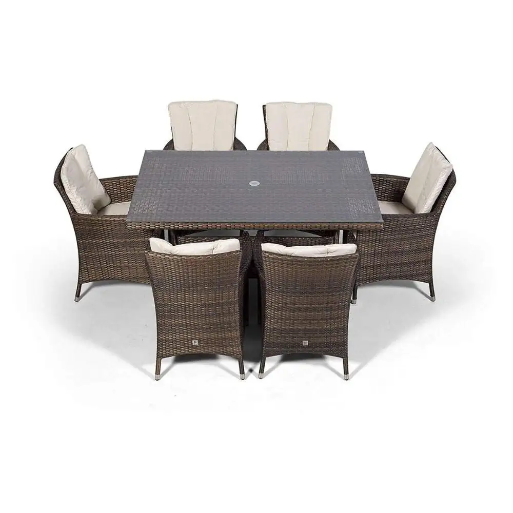 This Montreal – 6 Seat Set with Rectangular Table is ideal if you want to sit back and relax during that sunny summers evening with a cold drink as it has a central hole in the table to take a parasol to ensure you can keep the sun off you and your food if it becomes just too bright and hot.