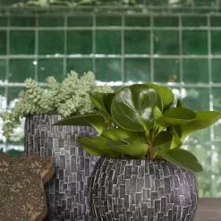 This planter has a slate stone design which is a composition of small elongated stones; the contrast of this texture gives the planters an extra dimension. This pot is designed for indoor use only so comes with a solid bottom but it is not guaranteed to be 100% watertight so the use of a planter inner is advised. Each pot is handmade which makes it unique and comes with a Lifetime year Warranty against production errors.