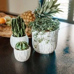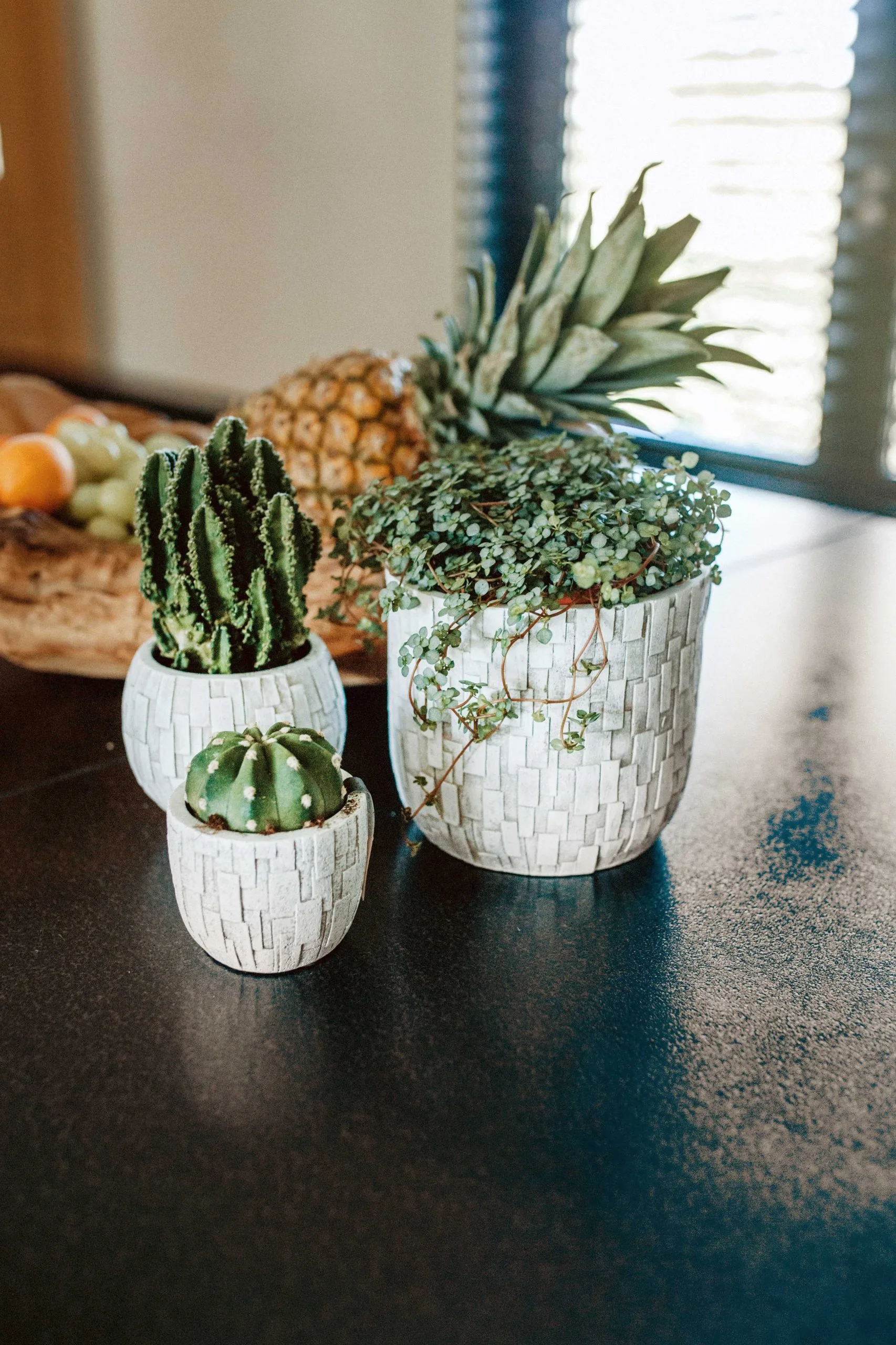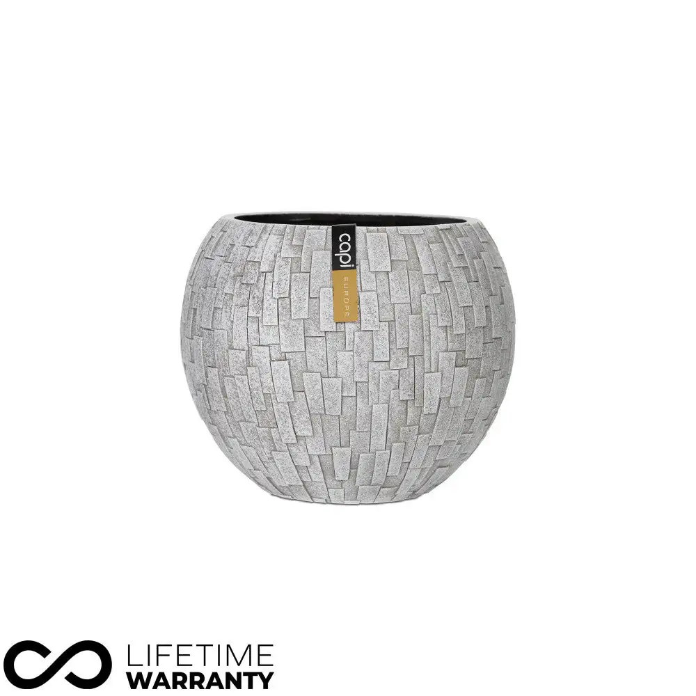 This planter has a slate stone design which is a composition of small elongated stones; the contrast of this texture gives the planters an extra dimension. This pot is designed for indoor use only so comes with a solid bottom but it is not guaranteed to be 100% watertight so the use of a planter inner is advised. Each pot is handmade which makes it unique and comes with a 3-year Warranty against production errors.