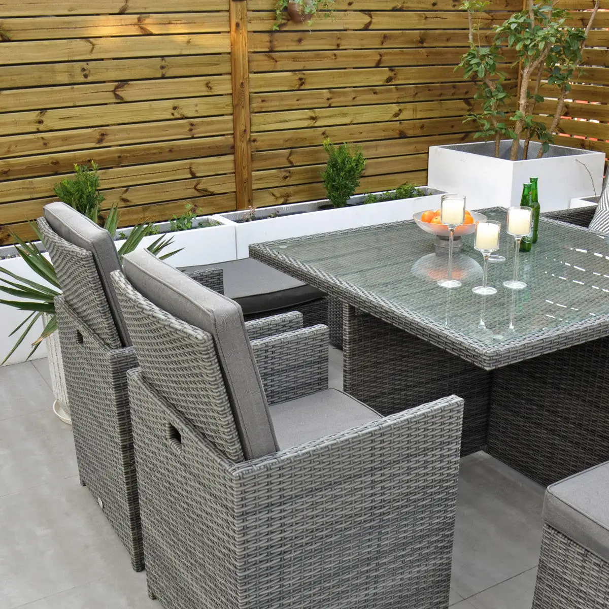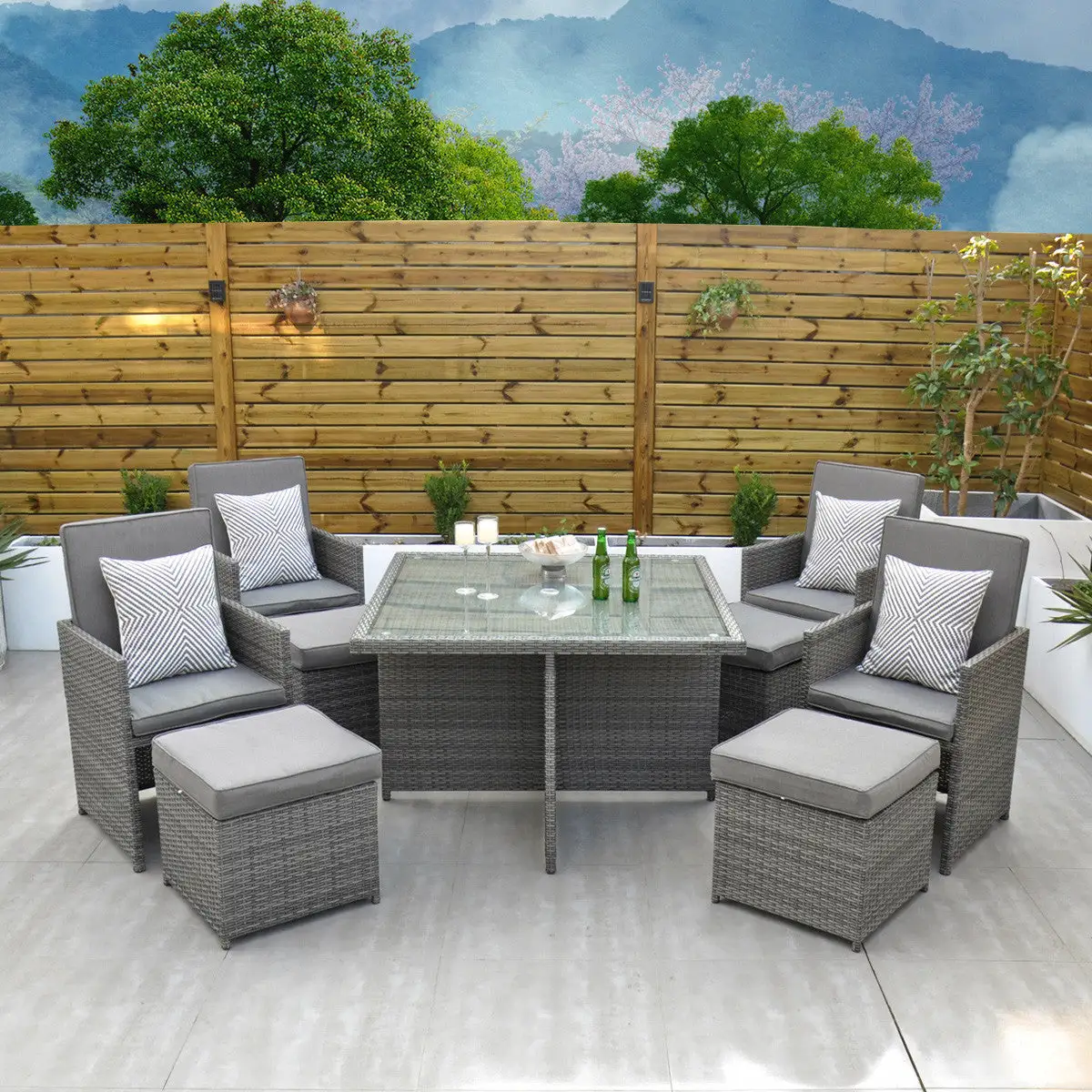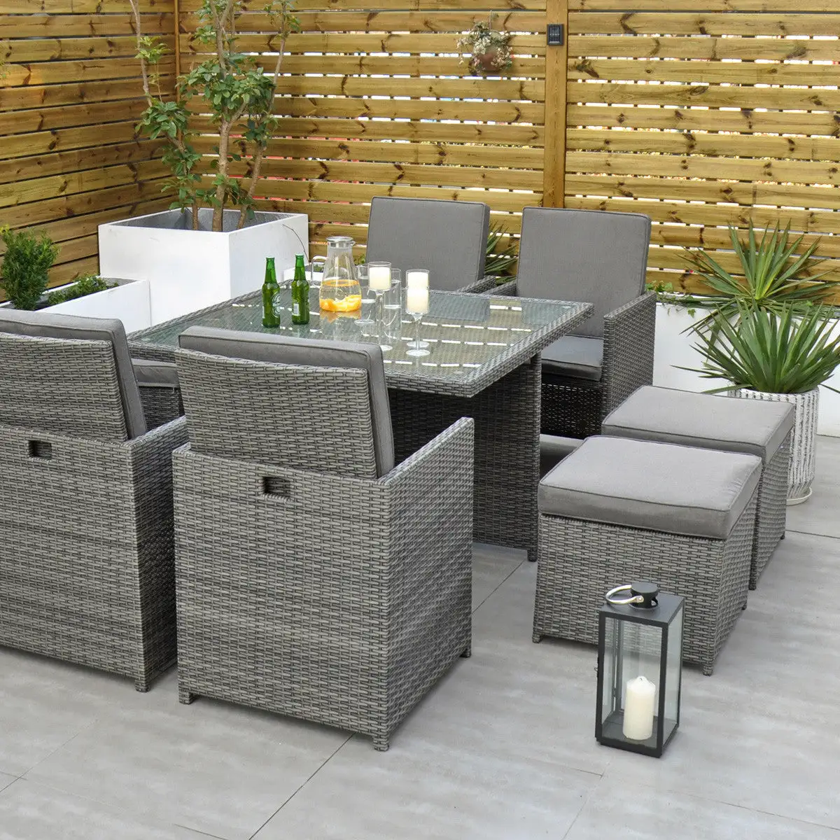 The clever design of the Ottawa – 4 Seat Cube Set makes it perfect if you are confined to space in your garden area. Initially a 4 Seat, it turns into an 8 Seat if needed with the 4 footstools, under each seat, being used as ottomans or simply use them as footstools if you want to sit back and relax during that sunny summers evening.