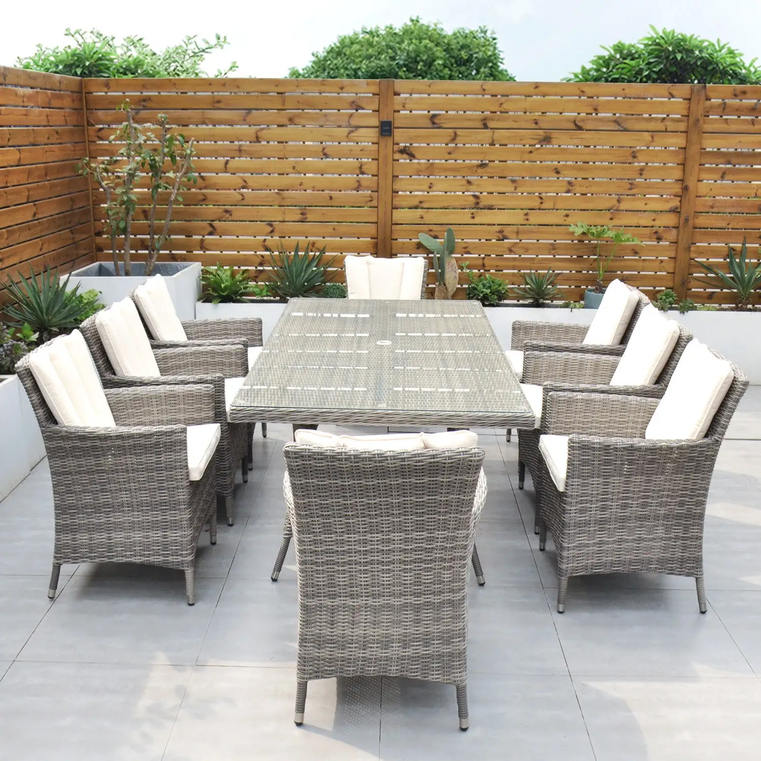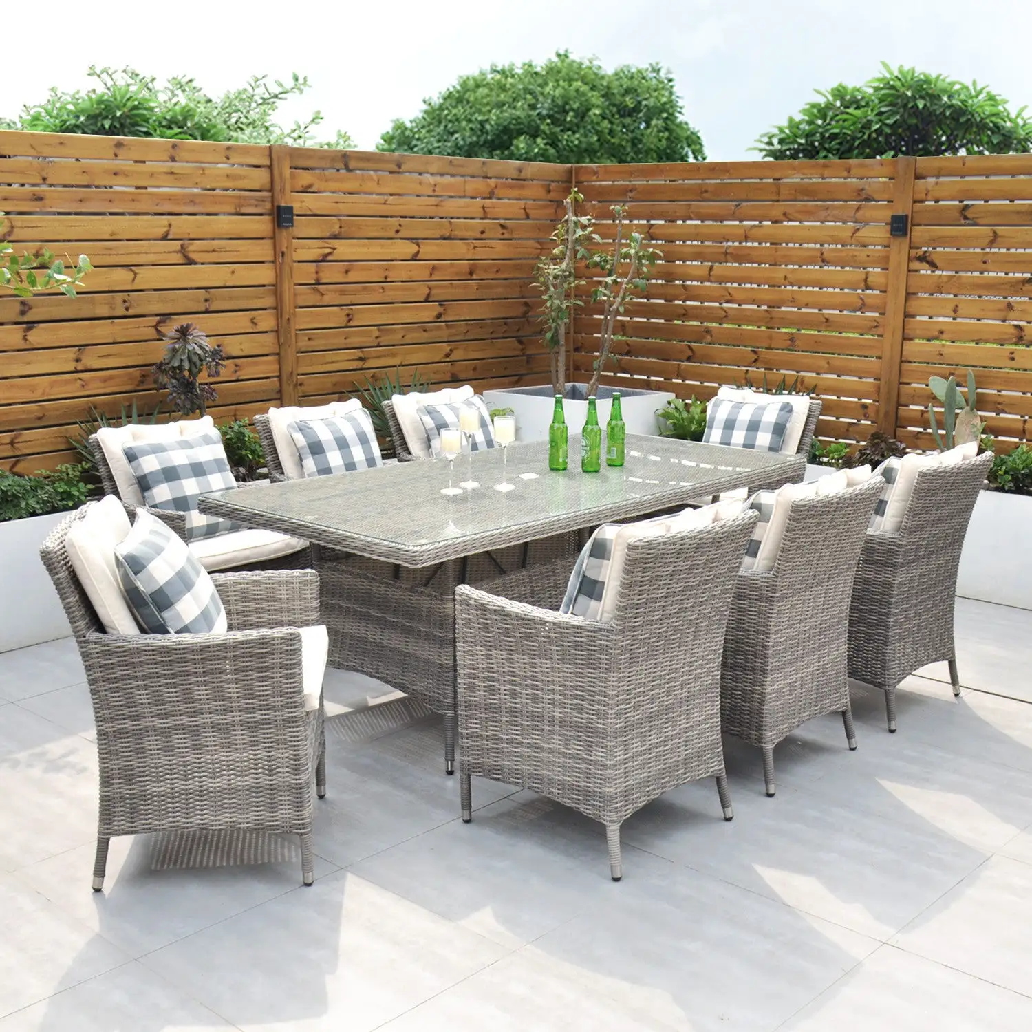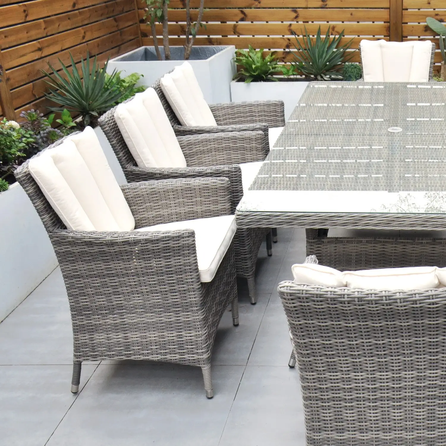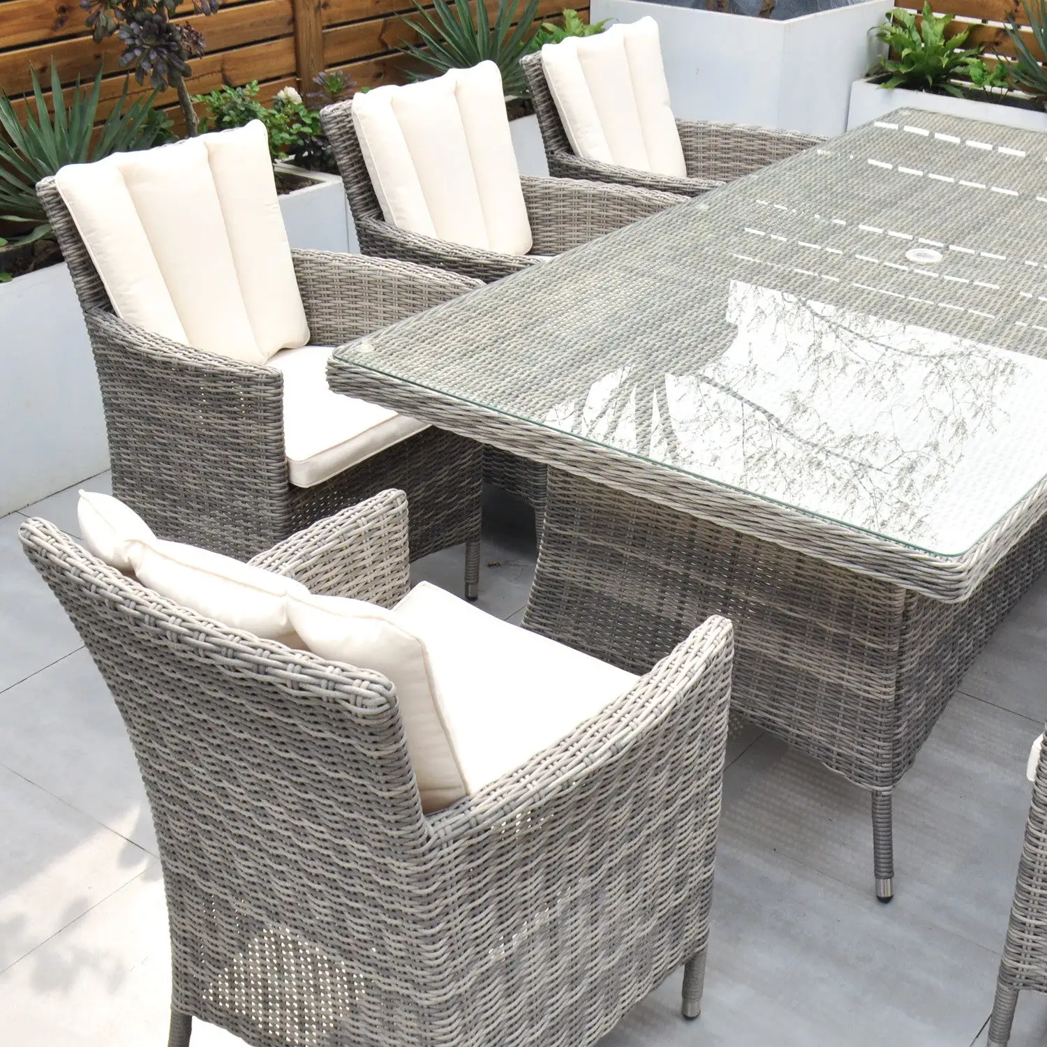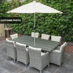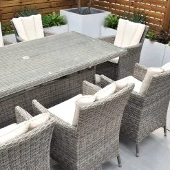 The Oxford 8 Seat Set will be simply stunning on any patio or decking area. The modern design combines comfort and style and is neat and compact while still allowing ample space for 8 people, the perfect outdoor dining set.