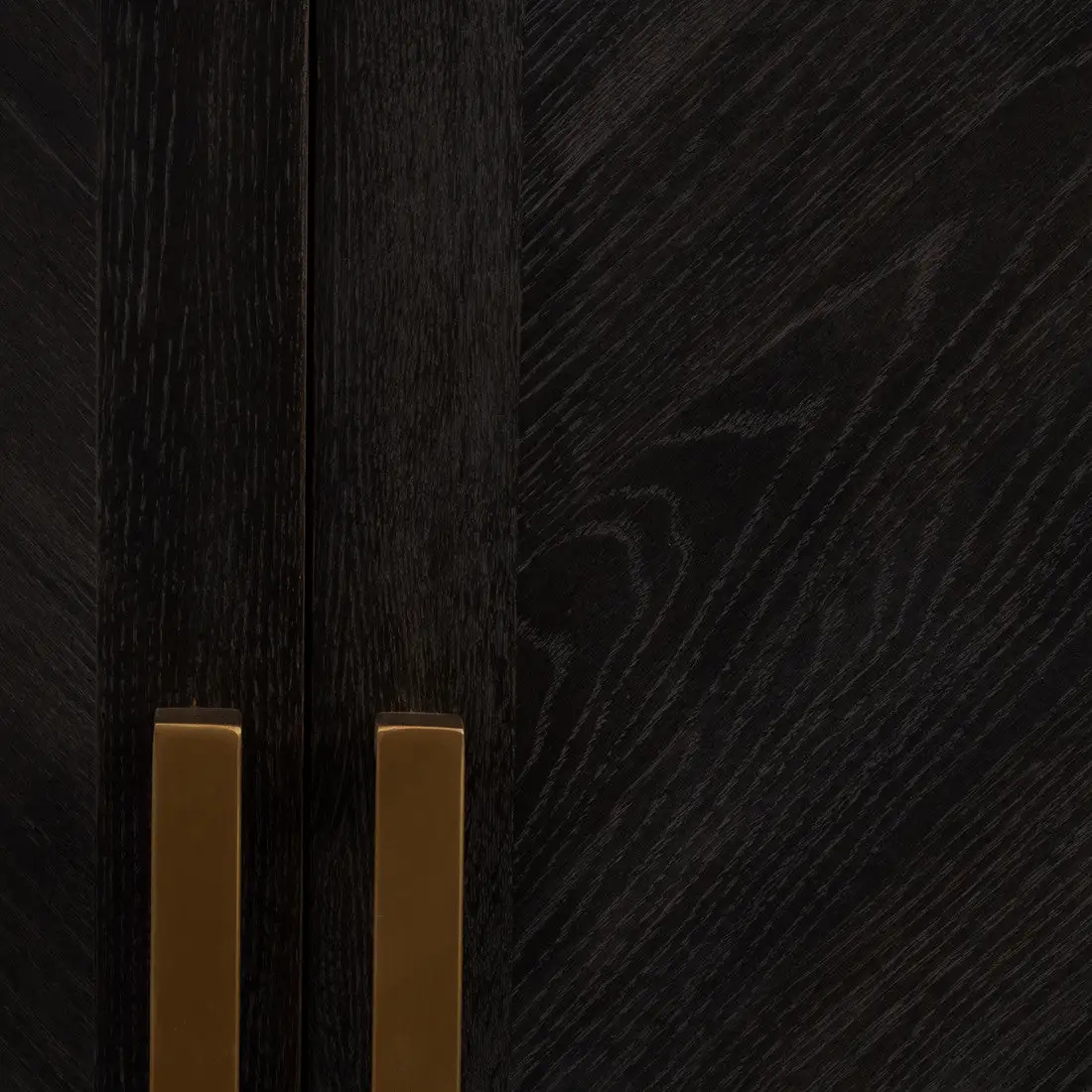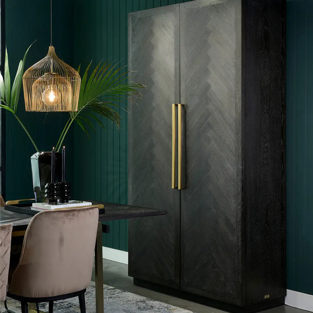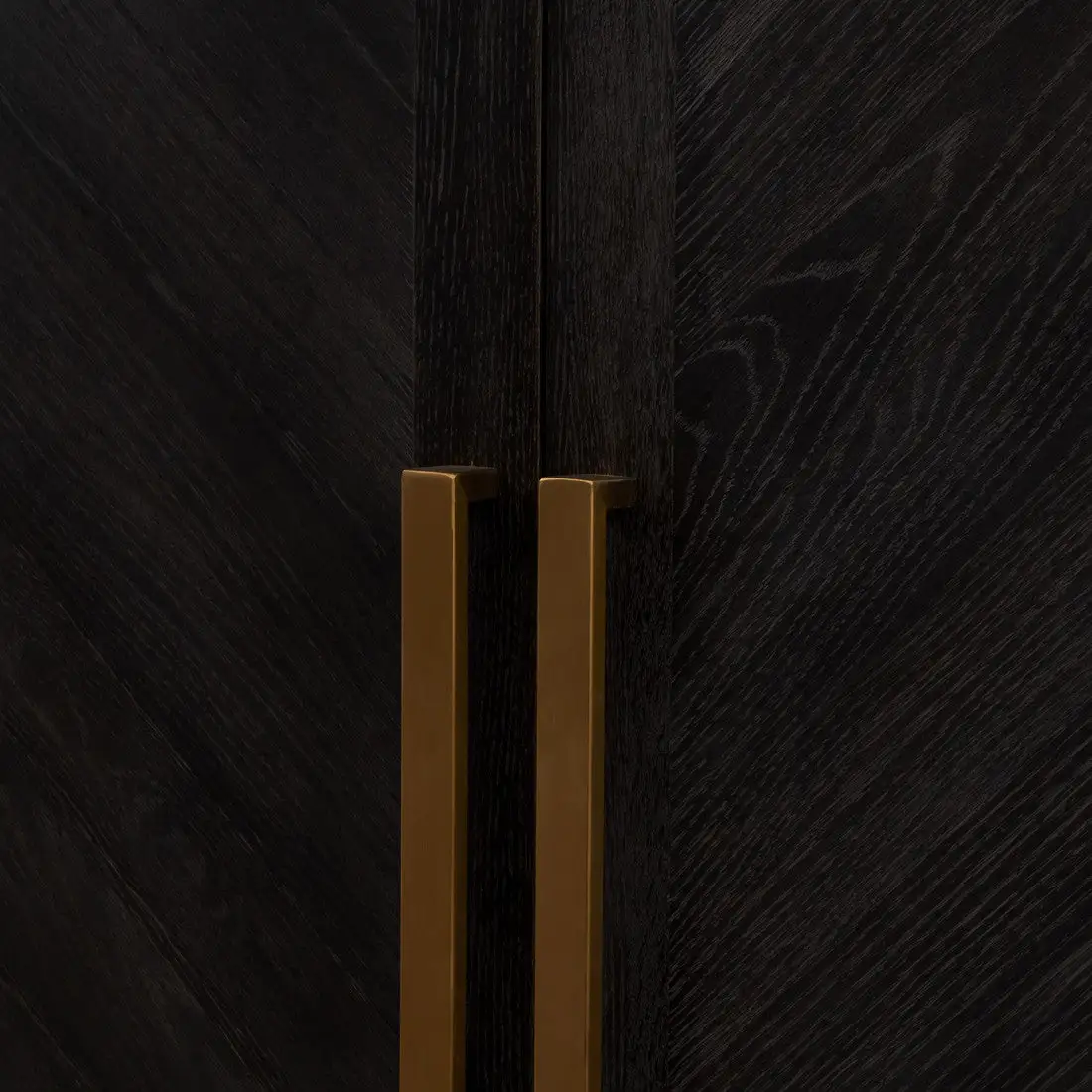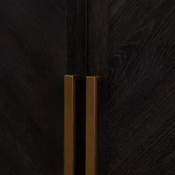 New in the 5th Avenue series, a spacious cabinet that stands at a whopping 2.23 metres tall. A perfect storage cabinet with loads of space. The doors feature a soft-close mechanism and give access to several deep shelves. The cabinet is made of dark-stained, recycled oak with soft-gold metal handles as a finishing touch. This cabinet makes for a perfect match with the Costa Mesa series. Tip: for maintenance, use the Premium Wood Care Kit.
