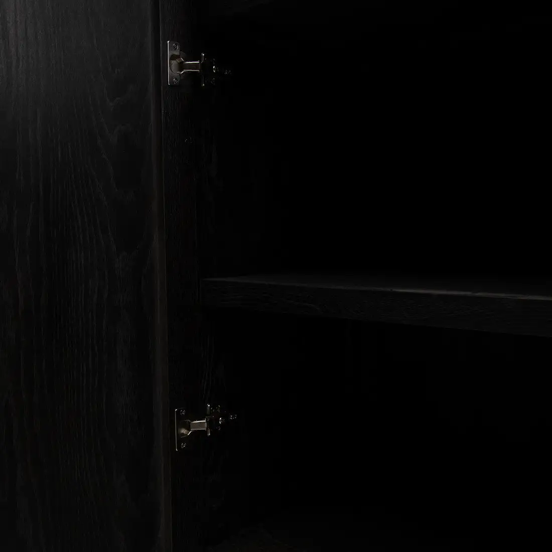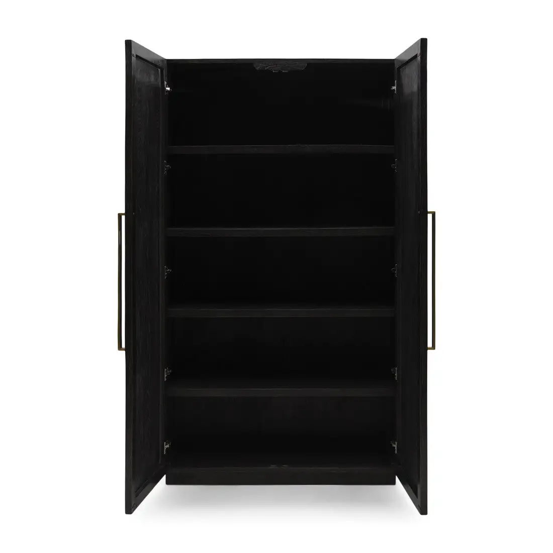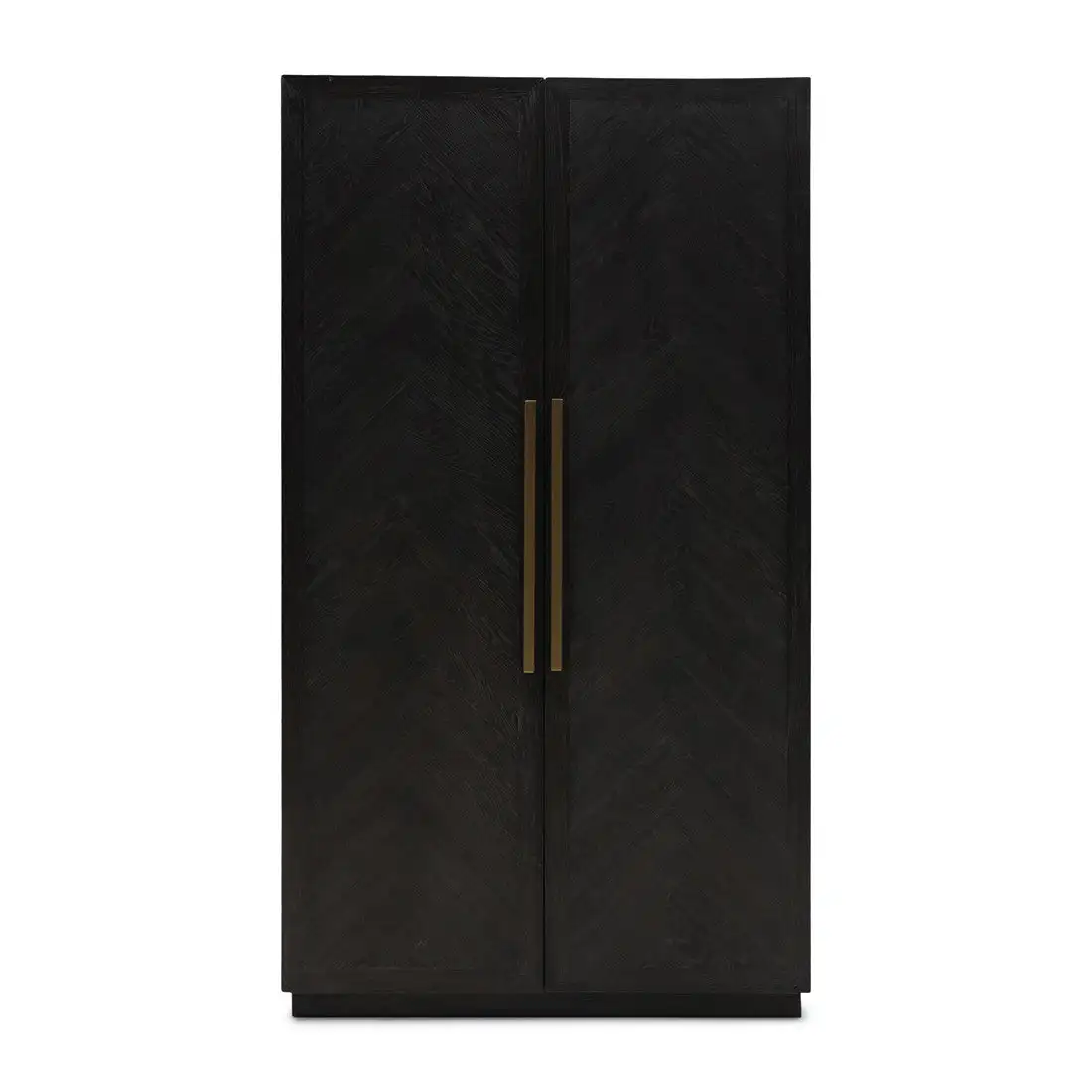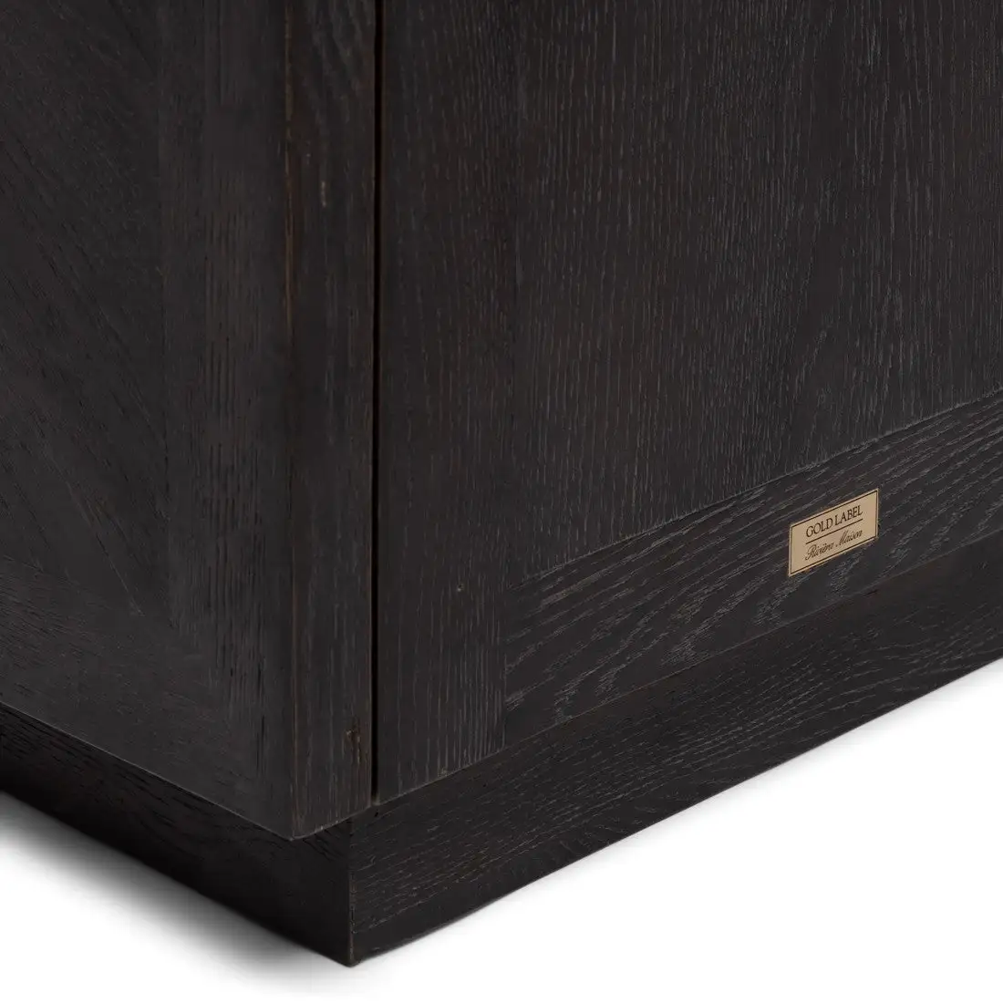 New in the 5th Avenue series, a spacious cabinet that stands at a whopping 2.23 metres tall. A perfect storage cabinet with loads of space. The doors feature a soft-close mechanism and give access to several deep shelves. The cabinet is made of dark-stained, recycled oak with soft-gold metal handles as a finishing touch. This cabinet makes for a perfect match with the Costa Mesa series. Tip: for maintenance, use the Premium Wood Care Kit.