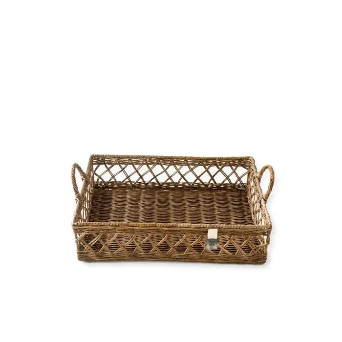 This multifunctional serving tray made of specially treated grey cane looks lovely in the kitchen with glasses on it or on the coffee table with decorations.