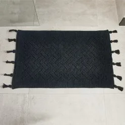Bath Mat Pretty Tassel is dark grey and has a stylish, graphic pattern and texture.