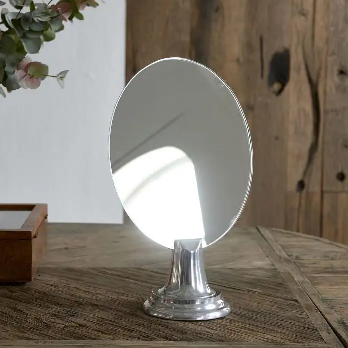 Belleza, that word alone… beauty. A standing mirror without an emphatic edge, which you can remove from its stand. The stand is made of soft shiny metal, simple but beautifully designed. Look in this beautiful mirror as often as you want. You can’t see the beauty from it.