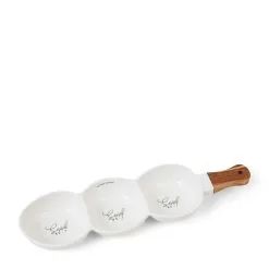 During a party, birthday or cosy evening at home on the couch, tasty snacks should not be missing. With this porcelain serving bowl, serving those snacks becomes very easy. These are actually three bowls in one, which you can put on the table in no time at all. Now all you have to do is choose which three snacks you want to use to fill the trays.
