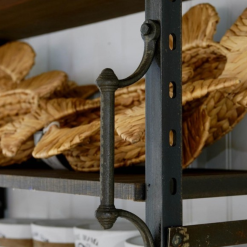The rustic shelf with a fashionable antique style is built of recycled spruce wood and metal and serves as an extension to the “Bowery Island Cabinet.” It may be utilized in a variety of ways, such as a bookshelf or a kitchen shelf, and its timeless shape fits into practically any living space. This shelf is solely intended for indoor use only.