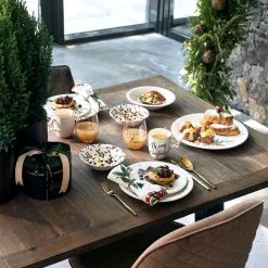 Hot chocolate, cappuccino, you name it, it tastes best from a mug from the Celebrate series. Gold decorated, black lettering and a fun ear to hold the porcelain mug. Don’t burn your fingers!