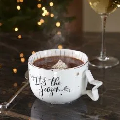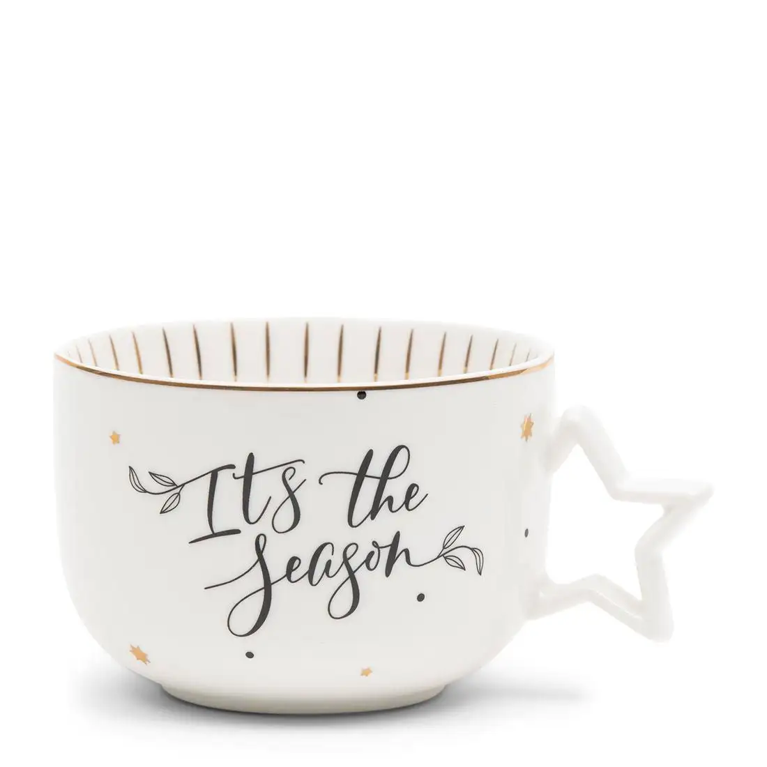 This gorgeous soup bowl from the Celebrate series will add a festive touch to your delicious soup. Made of porcelain, full of golden stripes and a quirky handle to keep your fingers safe.