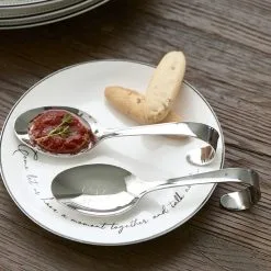Back with a vengeance. This set of two amuse-bouche spoons is the perfect start to a cosy dinner. Made of aluminium, the spoons are elegant, sturdy and maintenance free. They come in a gift box, and make a wonderful present.