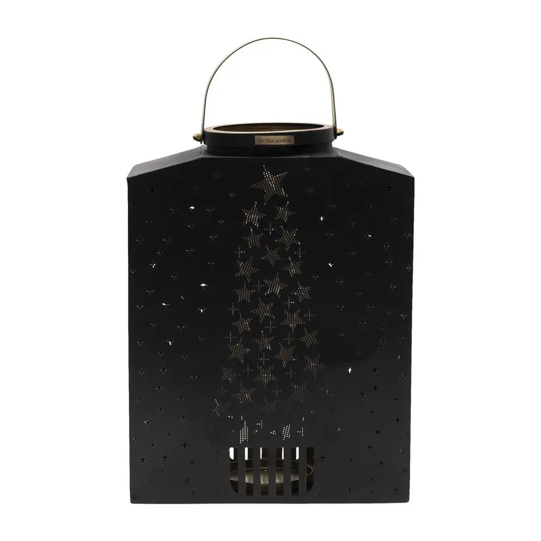 A lantern at the door, in the entrance hall or simply in the living room, with a Christmas Tree lantern you bring that nice holiday atmosphere into your home. The candle holder is made of metal with a sturdy black coating in which the pattern of a Christmas tree is applied. Tip: combine this lantern with the Starry Night lanterns for a nice combination.