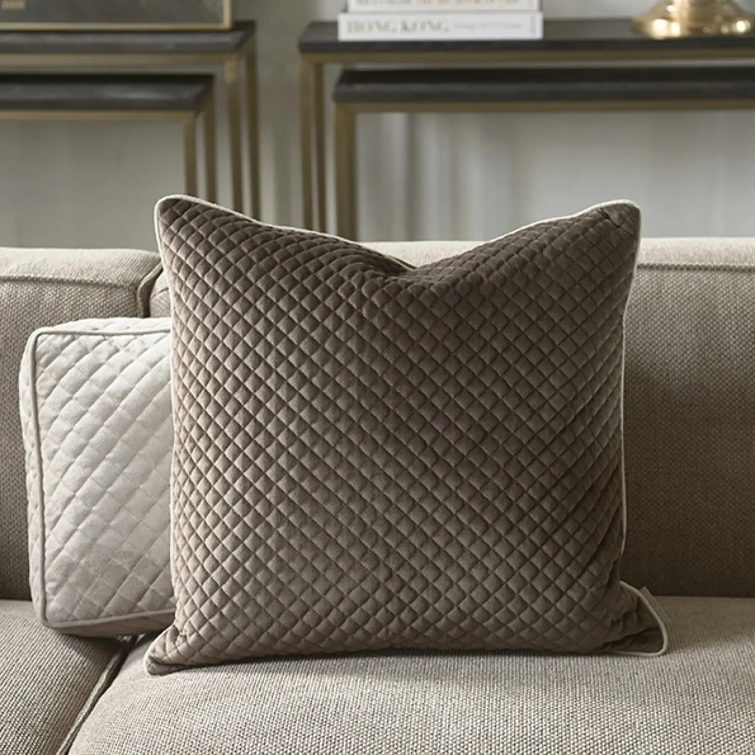 The velvety soft cover is quilted in a diamond pattern on the front, and the back is plain in the same soft material as the front.