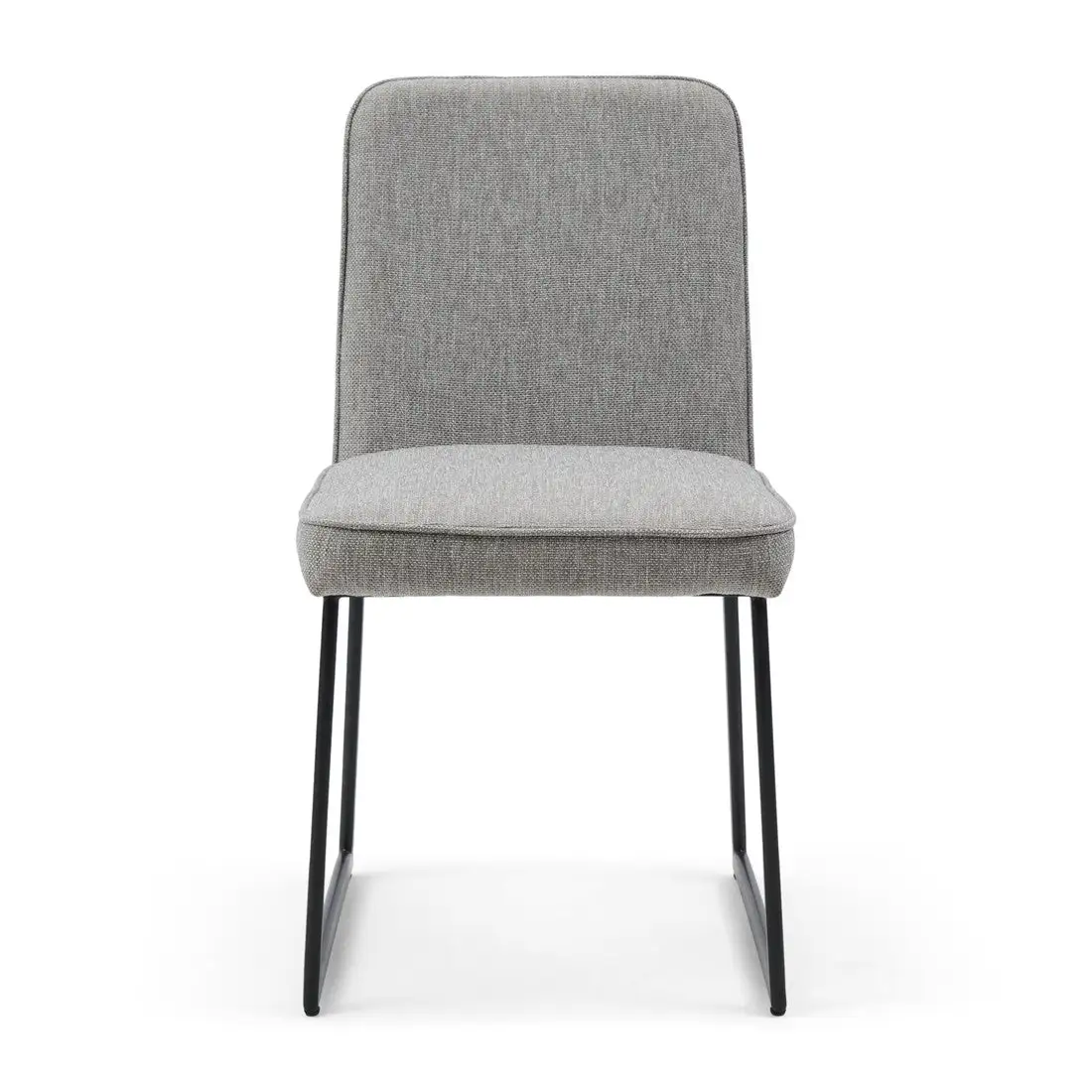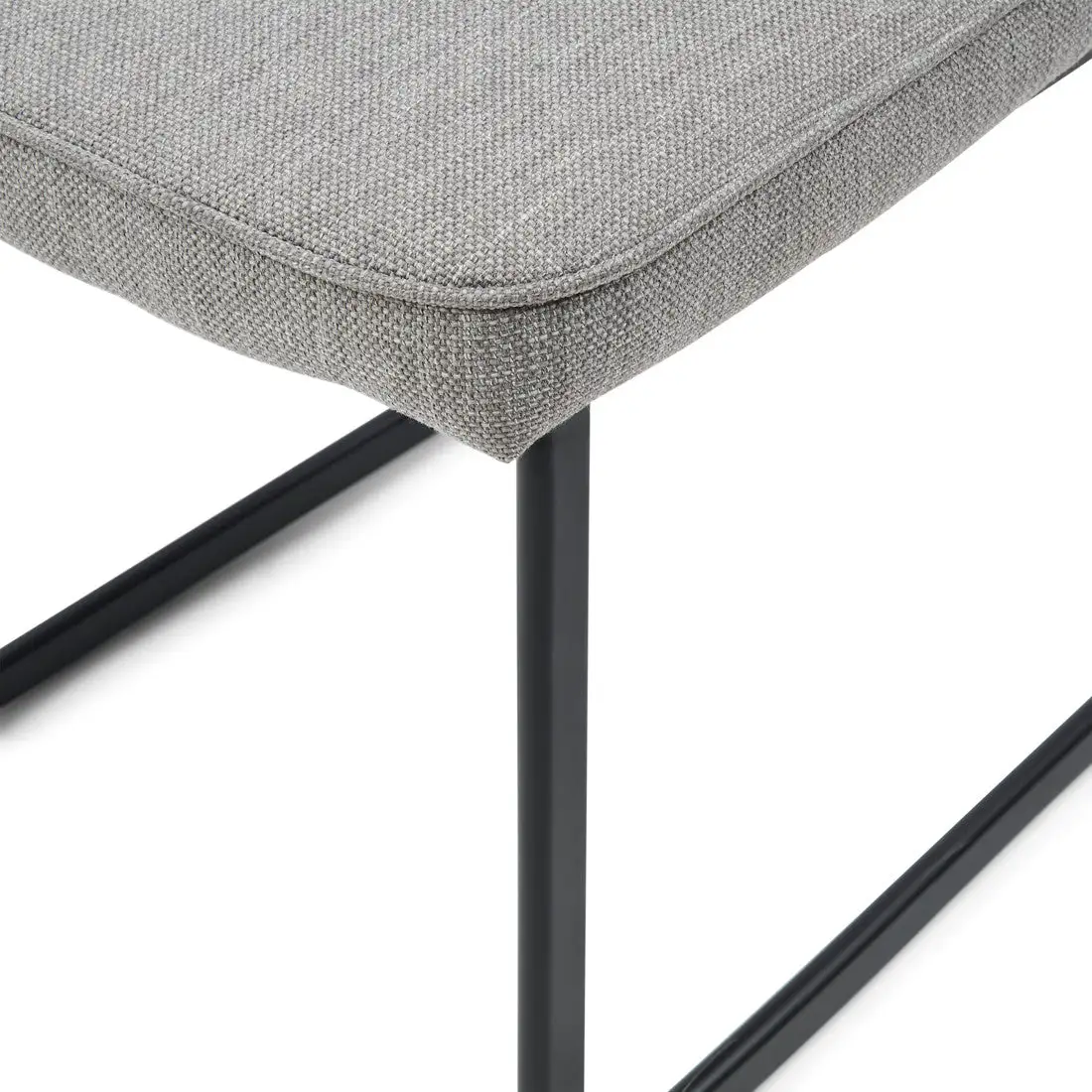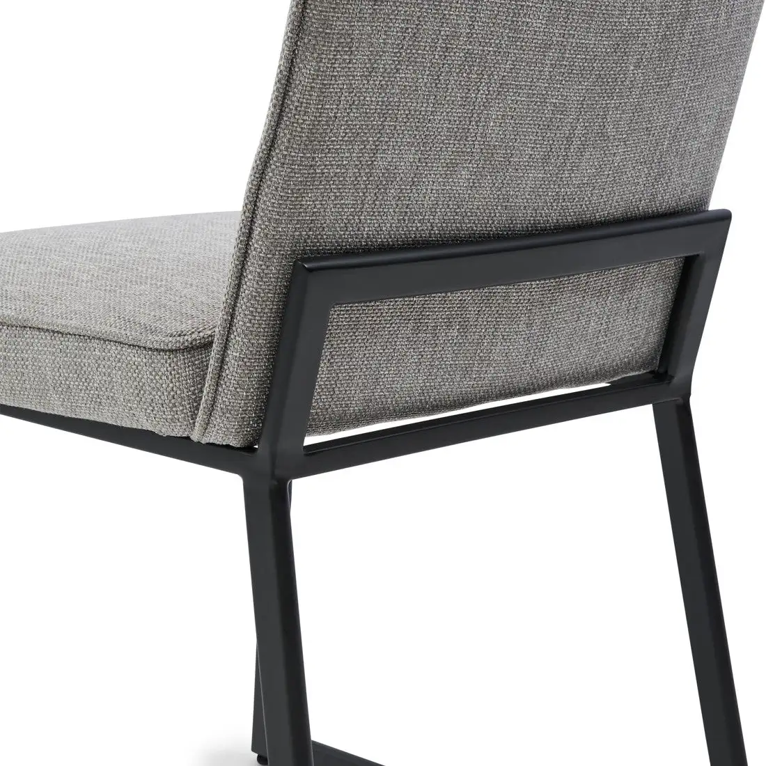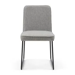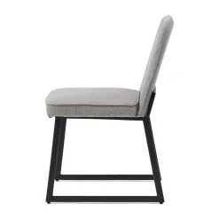 This simple yet very comfortable armless chair comes mounted of a black stainless steel frame. The seat and backrest are made with a coarse weave material from which stains should be removed, carefully, by hand. It is ideal for use as a padded dining chair or as a more comfortable chair in lecture halls etc.