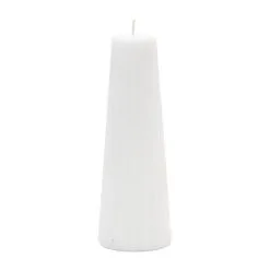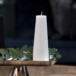 With its off-white colour, this cone-shaped candle with a vertical rib structure is a beautiful source of light and warmth. The white velvet finish gives the candle a matte finish. For extra stability, always place the candle on a saucer or shelf. This also prevents candle wax from dripping onto the surface.
