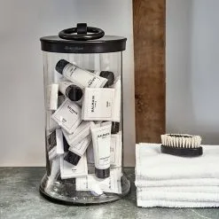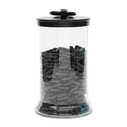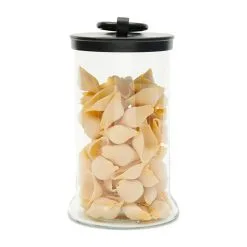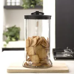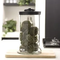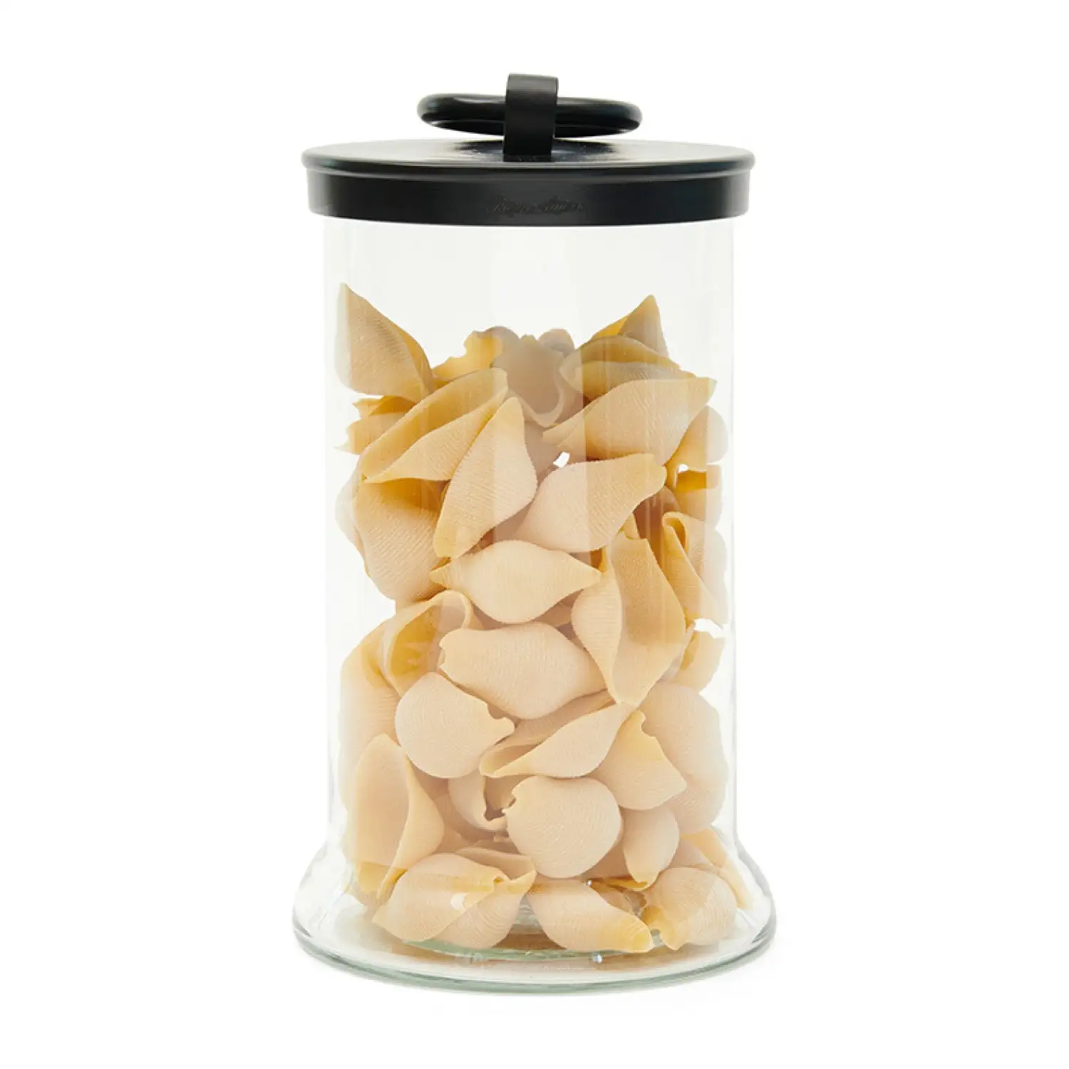 The tall, slim Cordoba storage jar is made from mouth-blown glass and black aluminium. It’s perfect for products like pasta and breakfast cereals, tidy and practical but also stylish enough to place in plain sight. Available in various designs and sizes.