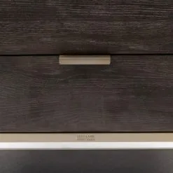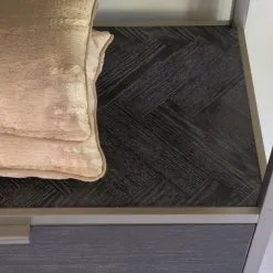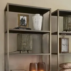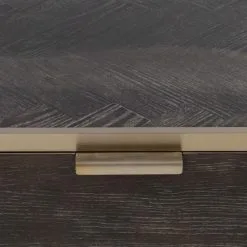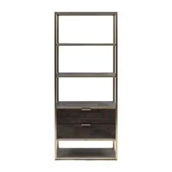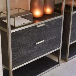 Costa Mesa bookcase is a beautiful cabinet from the furniture series of the same name. The oak of this cabinet was given a special treatment with a dark stain, which was sanded back and finished with a matte top layer. The frame is made of soft gold stainless steel. Tip: use the Premium Wood Care Kit for maintenance.