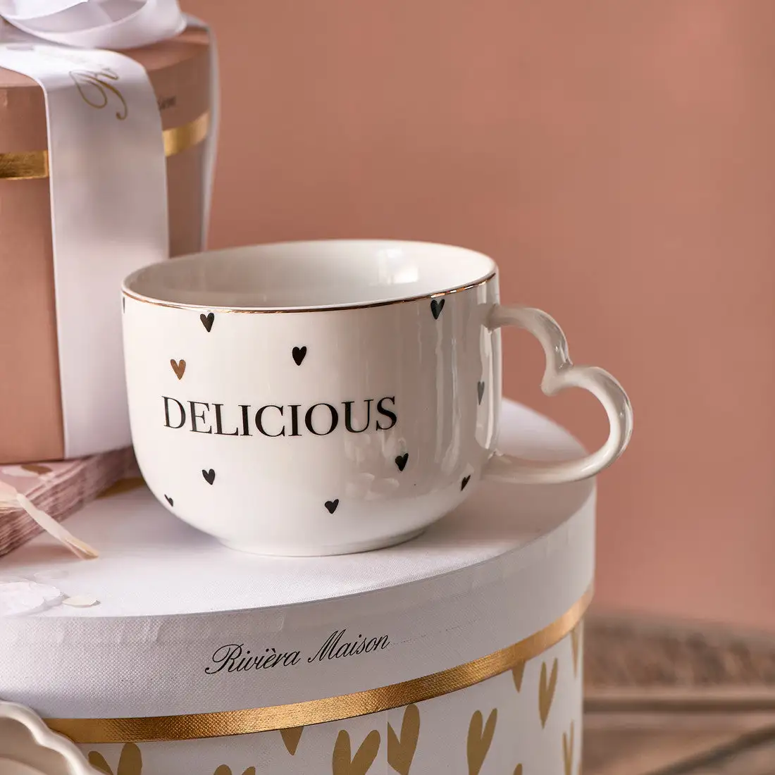 The Delicious Soup Bowl is a porcelain soup bowl in black and white with gold details. The handle of the bowl is shaped like a heart. A bowl you’ll love to use every day.