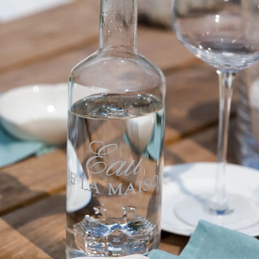 Besides house wine, you can now also serve ‘house water’ in the handblown Eau de la Maison Bottle. This water bottle has the characteristic Rivièra Maison house blown into the bottle’s surface.