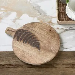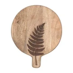 The urban jungle interior trend is here to stay. In addition to lots of green in the house, it also translates into accessories such as this remarkable chopping board. This round board features a protruding handle and is completely made of flamed mango wood. The pattern of a fern leaf is meticulously engraved into the board. This makes it a very decorative addition to your kitchen counter.
