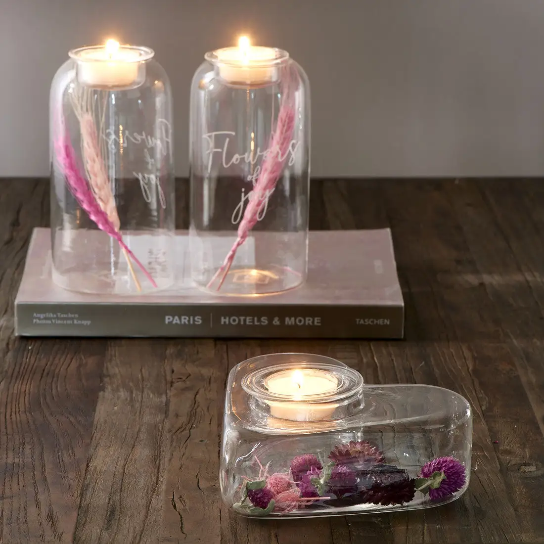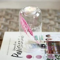 The Flowers of Joy Fillable Votive is a tealight holder made of glass with her name printed onto the glass and comes with matching dried flowers inside. The top is open to allow you to replace the dried flowers or add more decoration