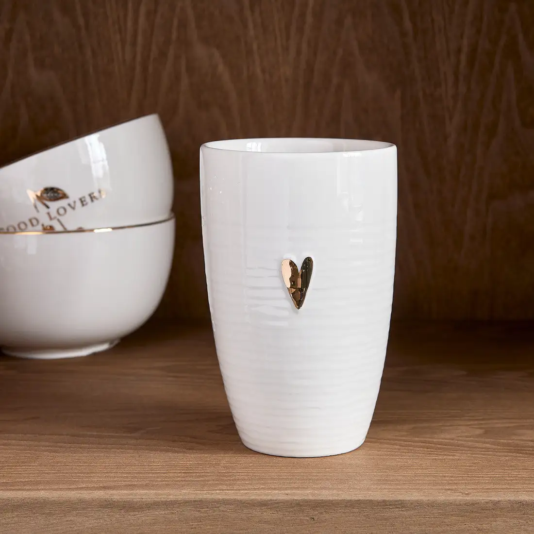 The Food Lovers Large Mug is a beautiful example of Rivièra Maison’s craftsmanship. The mug made with gorgeous white porcelain and lacks a handle making it both trendy and comfortable to hold. The mug comes with a subtle golden heart as a refined detail. The tableware is made of white porcelain and is manufactured by hand, and therefore each item is unique.