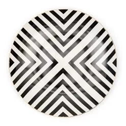 Serve a generous portion of glamour with the breakfast plate from this tableware series! This white plate is made of porcelain and features a black striped pattern and a golden rim. The breakfast plate has a diameter of 22 centimetres. Mix and match and compose your own glamorous set of tableware.