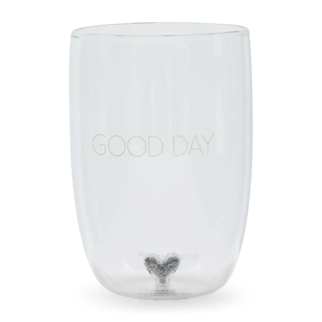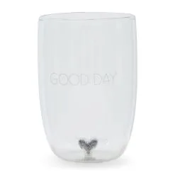 Artistically crafted from mouth-blown glass and with a heart-shaped motif, filled with silver glitter, makes the Good Day glass a most desirable glass for almost any drink.