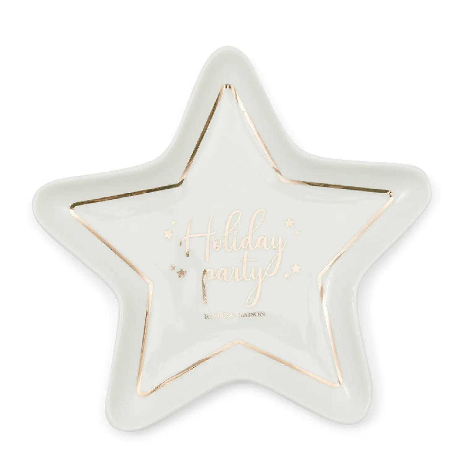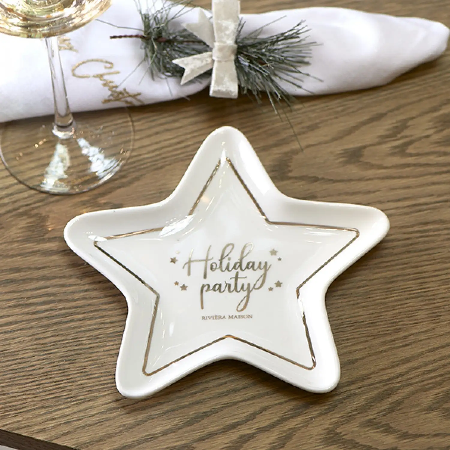 This lovely little star-shaped white porcelain plate is especially suitable for serving small delicacies like chocolates or biscuits. With its golden decoration, it adds to the Christmas feeling.