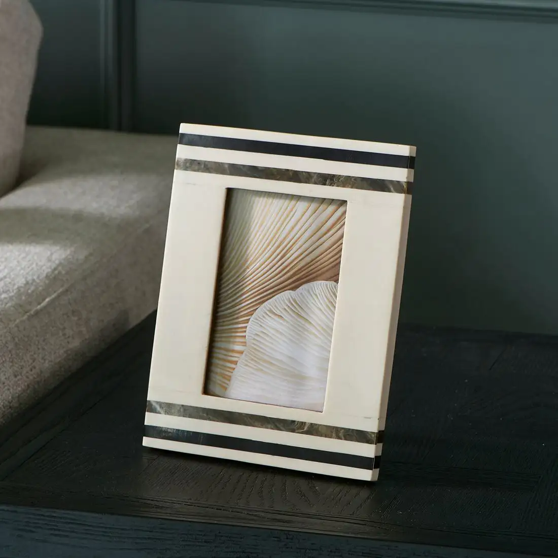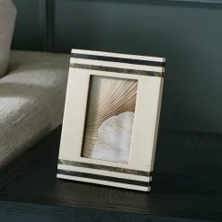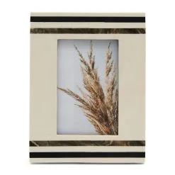 The Hotel Chic Photo Frame S is a photo frame suitable for photos with a size of 10 x 15 centimeters. The light frame has four stripes. Two of them have a marble effect. The chic photo frame is also available in a different variant.