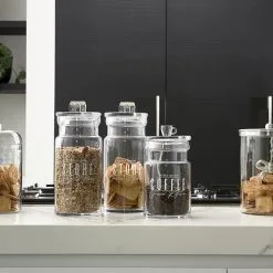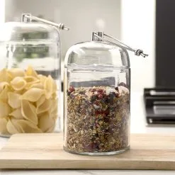 Glass storage jars should be practical, offer a clear view of their contents, and be nice to look at. This is certainly the case with the Knotted Storage Jar, made from mouth-blown glass with a knotted aluminium detail on the lid. Available in different sizes.