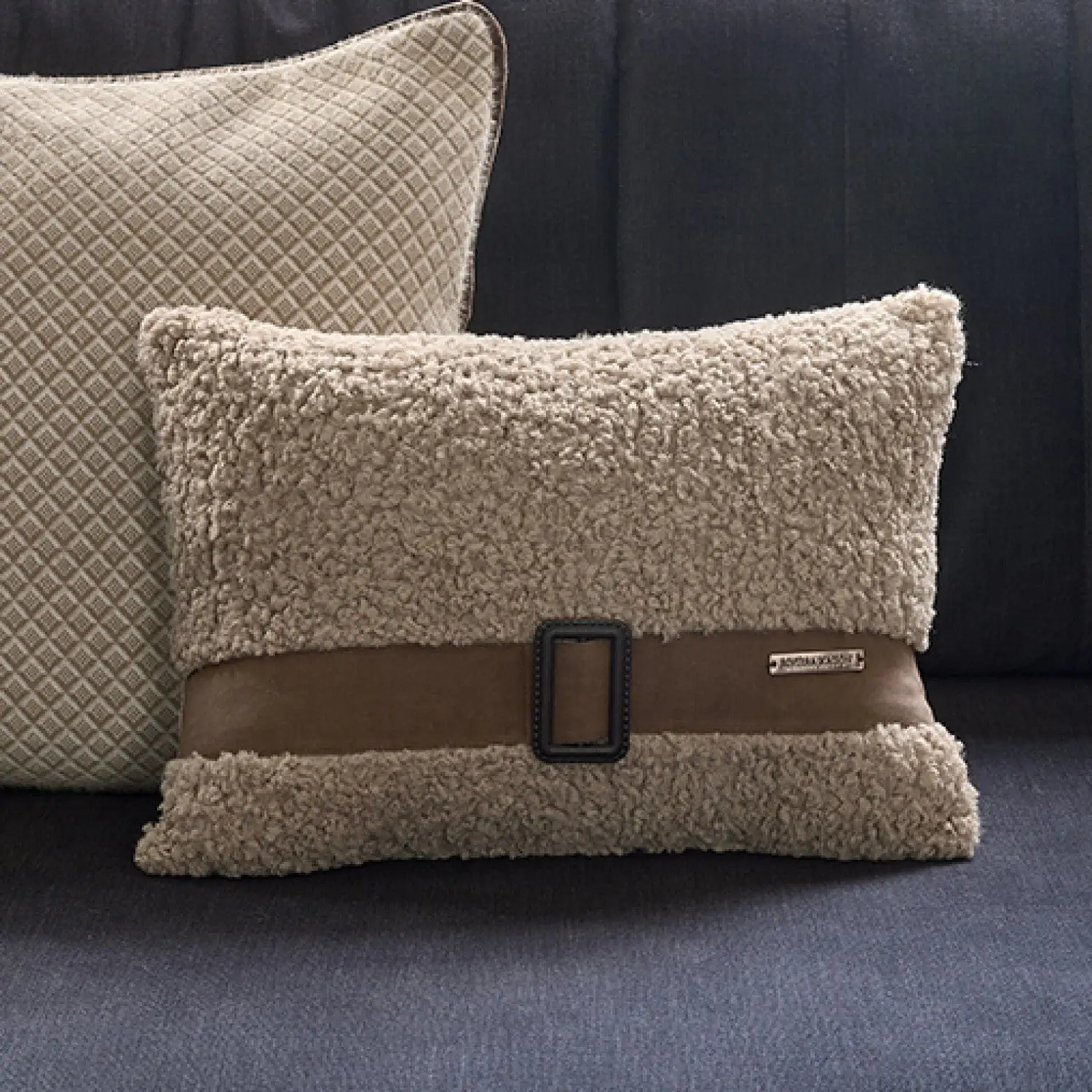 A velvet belt with a PU leather buckle is stitched onto the curly fabric.