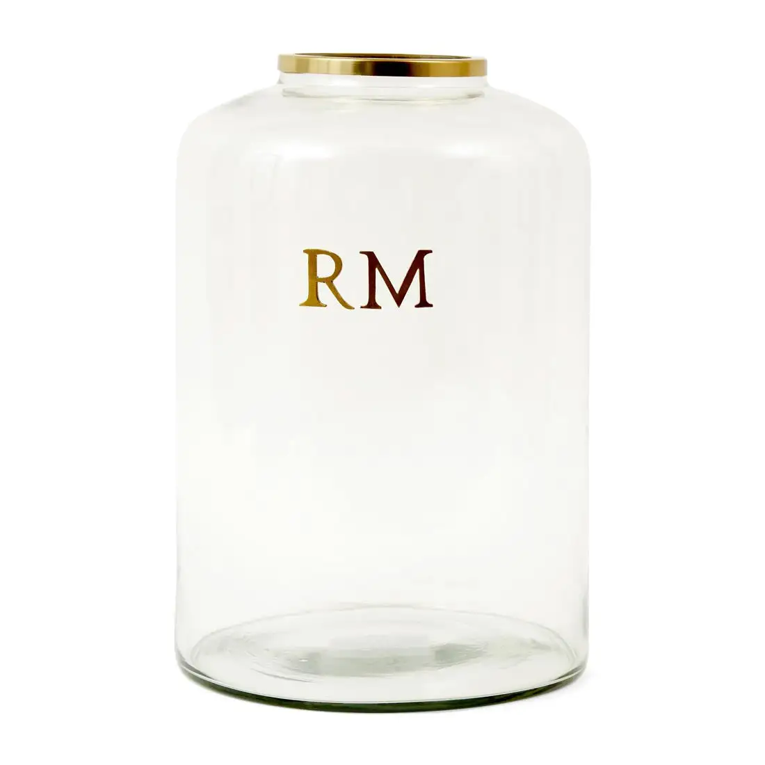 This lantern may justifiably bear the name hurricane lamp. The wind can’t get to it. Large and tough, glass all around with the metal letters RM on the outside. Many long evenings on the balcony, terrace or in the garden. Put down a large, thick candle and summer can begin. A drink at hand and there’s nothing else to do… It comes in two sizes.