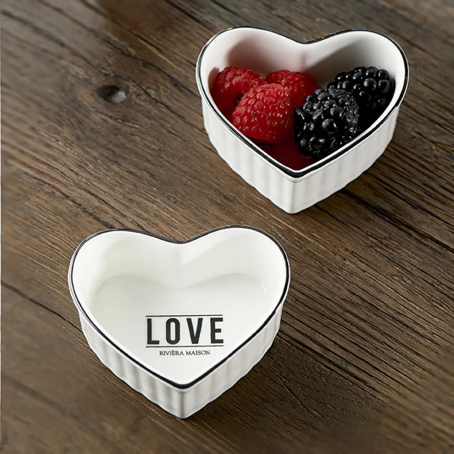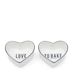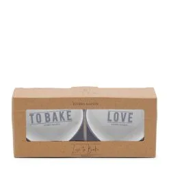 The two Love To Bake Bowls come in a special gift box, so giving or receiving them is a pleasure in itself. Made of white porcelain, they can also be used as small bowls or serving dishes. One bears the word ‘Love’ in dark letters, and the other reads ‘To Bake’.