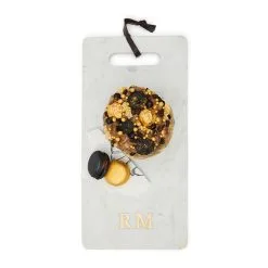 In addition to being practical, serving and cutting boards have also increasingly become kitchen accessories to show off. Take this marble serving board, with its aluminium gold and leather details. It’s a great setting for a festive snack, and combines decoratively with other marble and wooden serving and cutting boards.