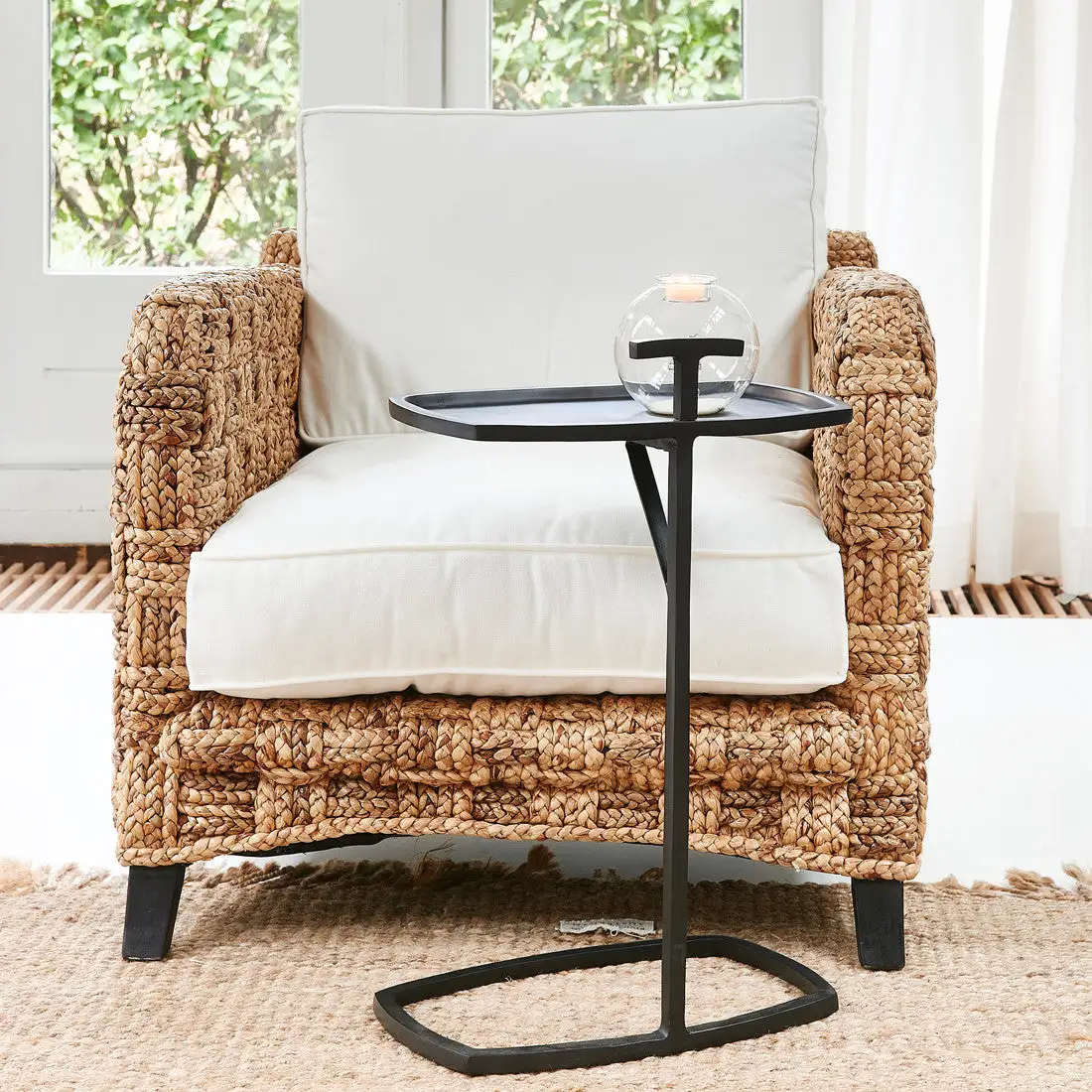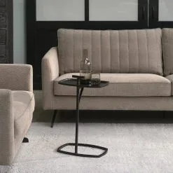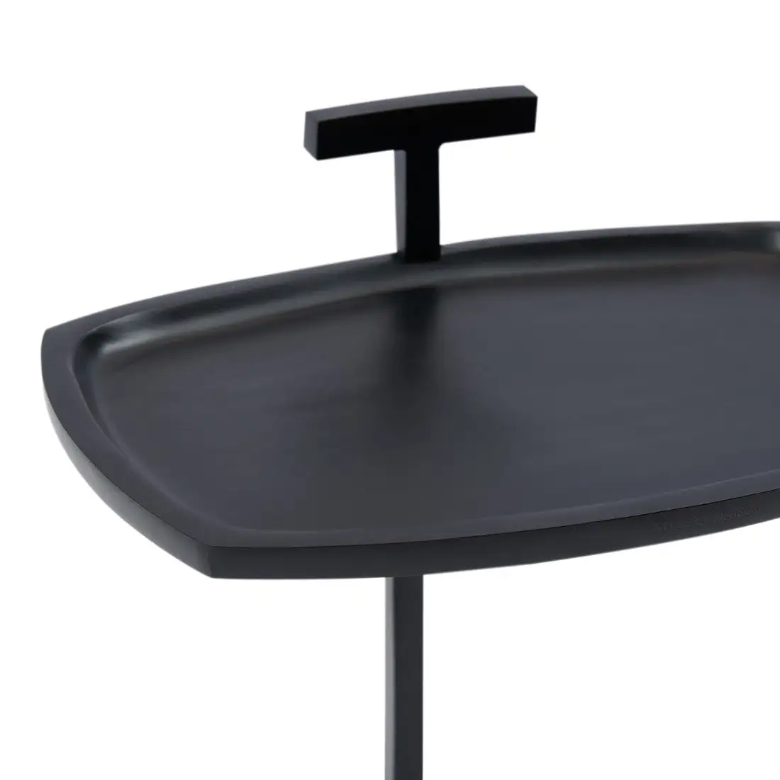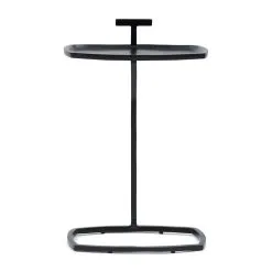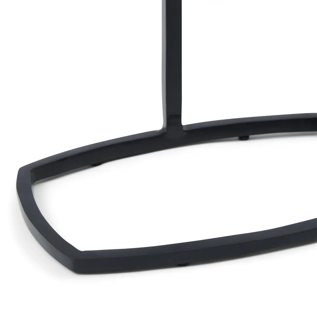 The base is slim, sleek and features the same shape as the top. Move this black side table around with ease thank to the practical handle.