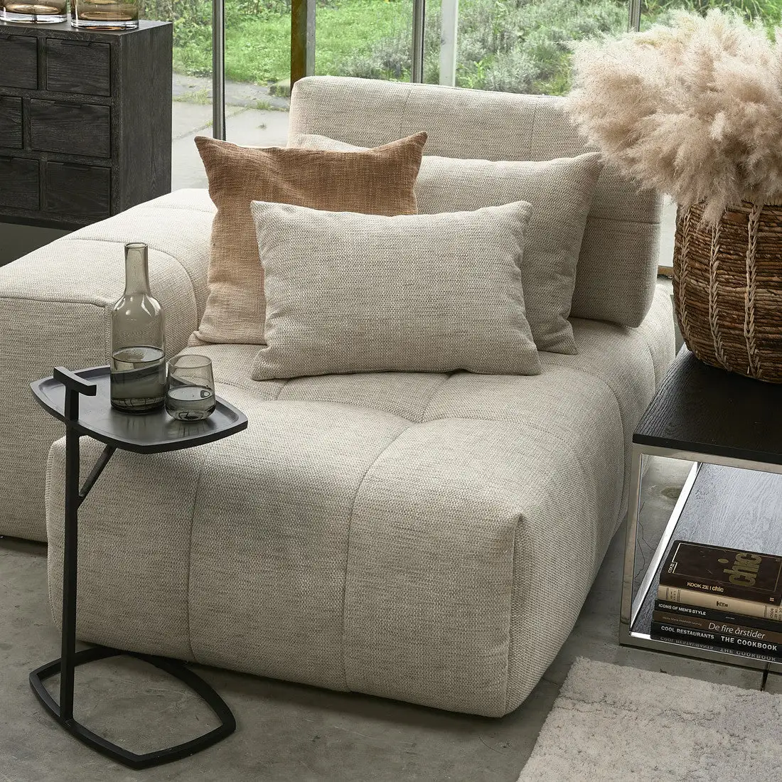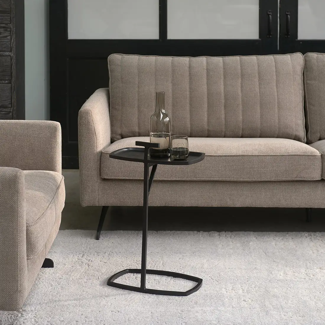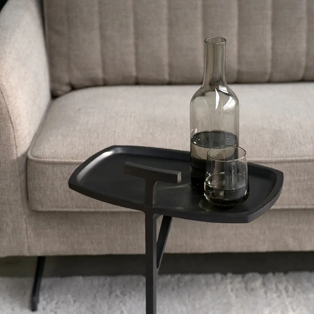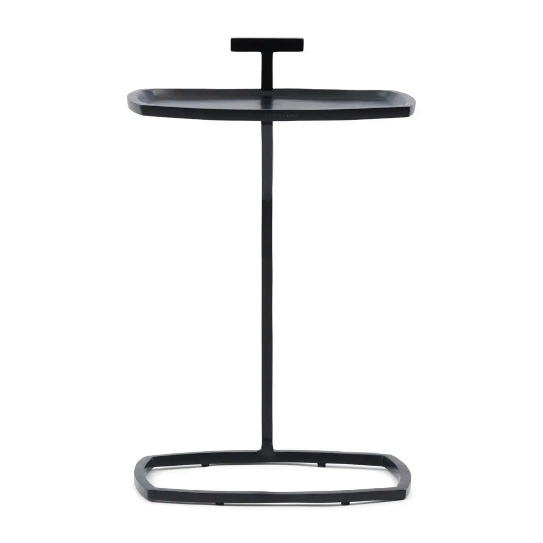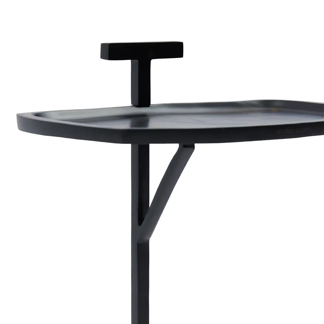 The Meatpacking District End Table is a luxurious side table of black aluminium. The table boasts an elongated black top with a slightly raised edge.