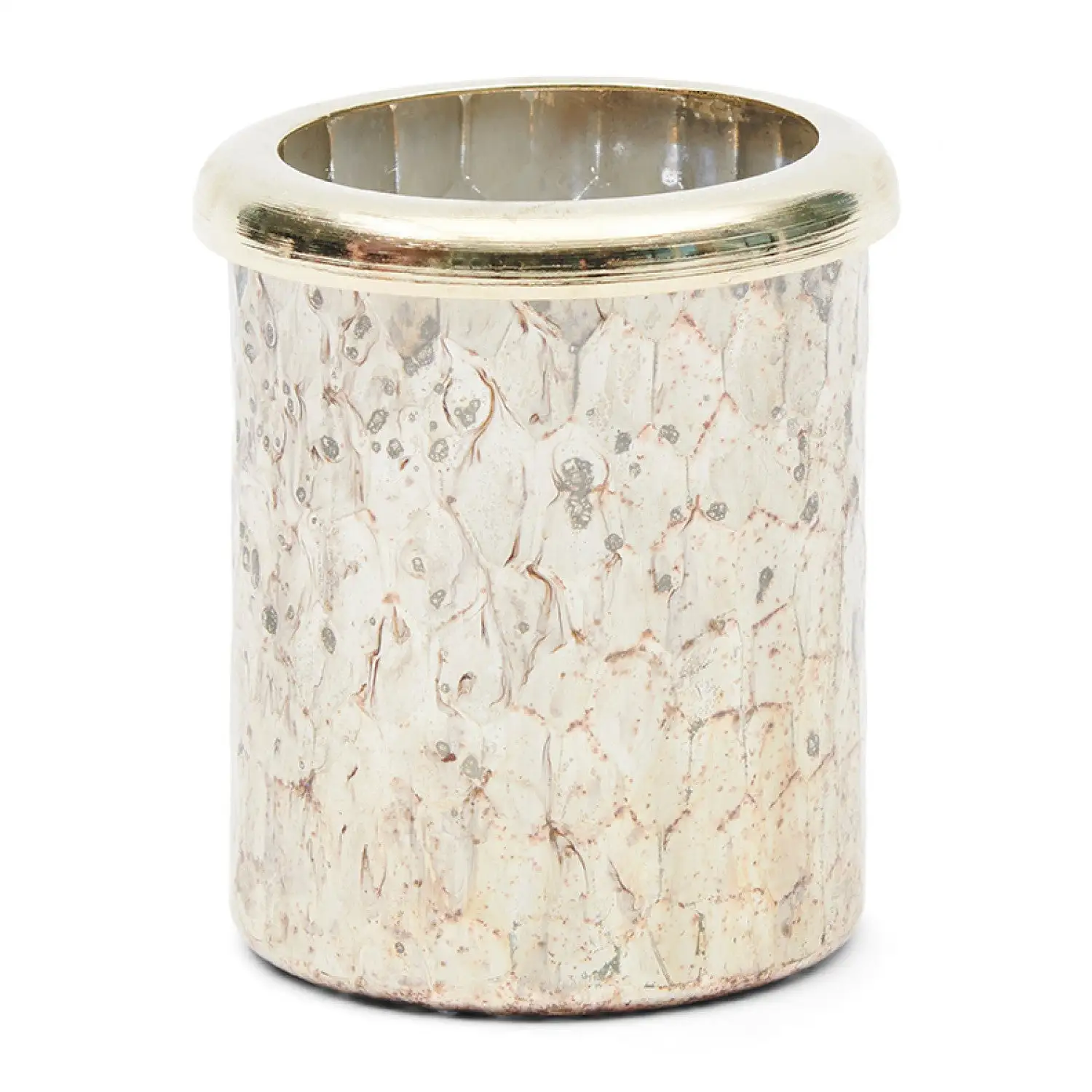 Relief glass windlight with a matt metal finish. When the flame dances, the honeycomb figure in the glass comes to life beautifully. If that’s not atmospheric, we don’t know what is. Also available in other sizes.