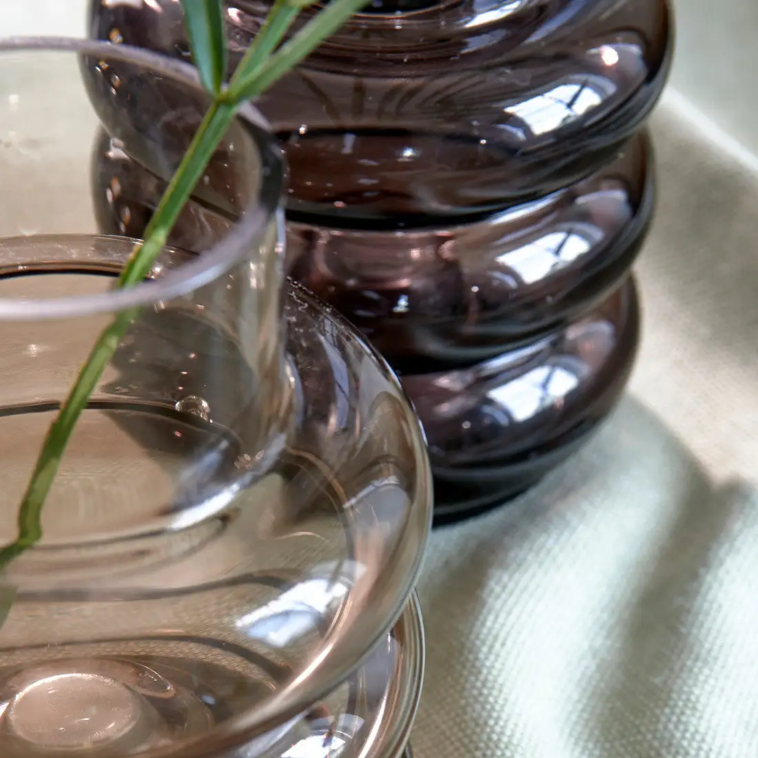 The handcrafted glass Multiple Candle Holder Vase is a truly multifunctional accessory. Use it as a vase for a bouquet or turn it upside down and use it as a candlestick for a dinner candle or tealight. This unit comes in brown and there is another version which comes in transparent black glass so you can mix and match.