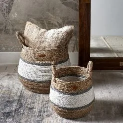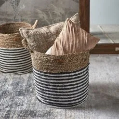 With our Ocean Breeze Baskets, you can combine the necessary with the attractive. Made of twisted seagrass, they combine rugged texture with the fineness of the handmade. At a height of 39 cm, there is a beautiful balance between natural weave and hand-painted white and anthracite weave.