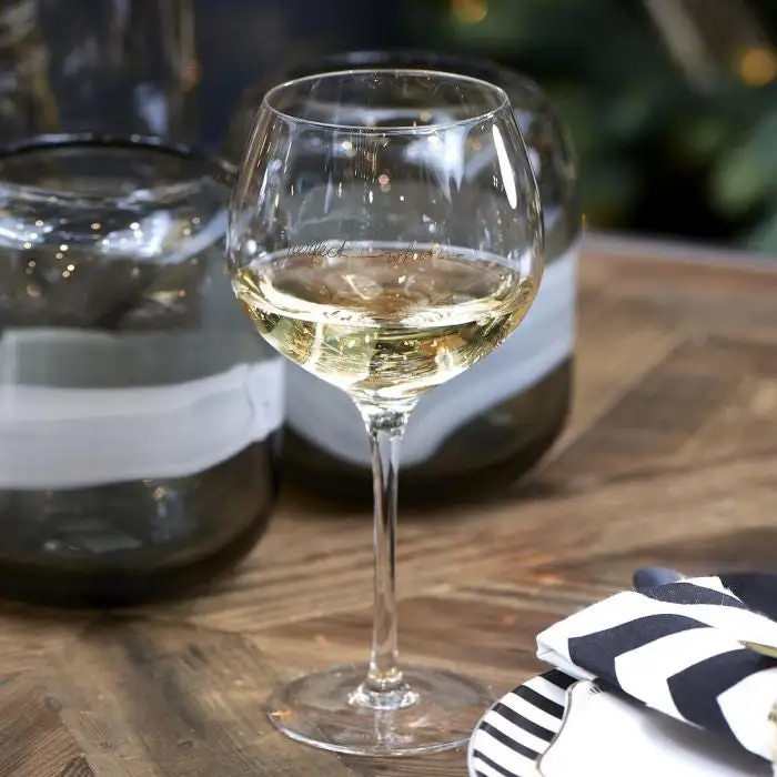The Perfect White Wine Glass is a great addition to any glassware collection, thanks to its beautiful appearance with subtle details. The glass stands on a slim foot with a stem and features a rounded chalice with a golden print that spells ‘perfect white wine’. A nice detail: the glass is mouth-blown and decorated by hand. Also available as a red wine glass.