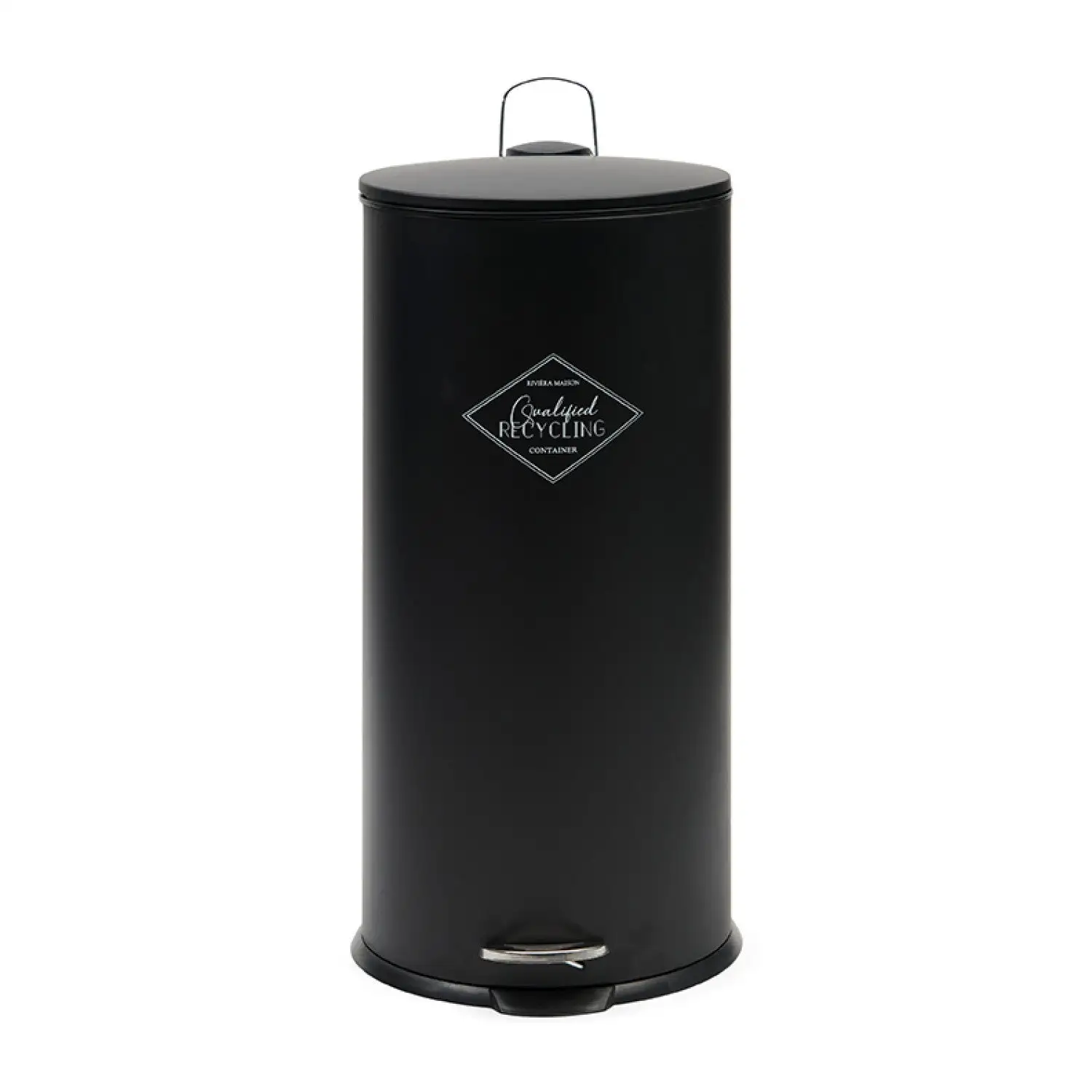 The Qualified Recycling Waste Bin adds style to your kitchen, in an elegant black with a white print and a pedal-operated lid. It is available in different sizes.
