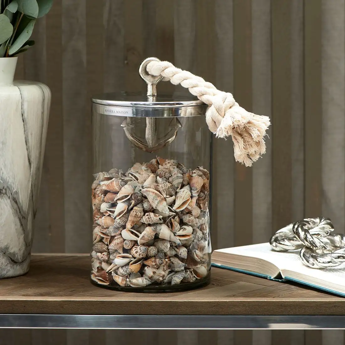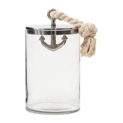 Our nautical-themed storage jar is perfect for that summer sailing feel. The aluminium anchor handle catches the eye as it extends down into the glass pot, whilst the sailor’s knot rope gives it extra distinction. Filled with shells or biscuits, it is a swell jar to have on board.