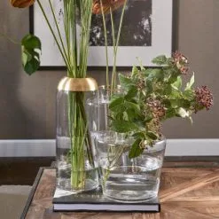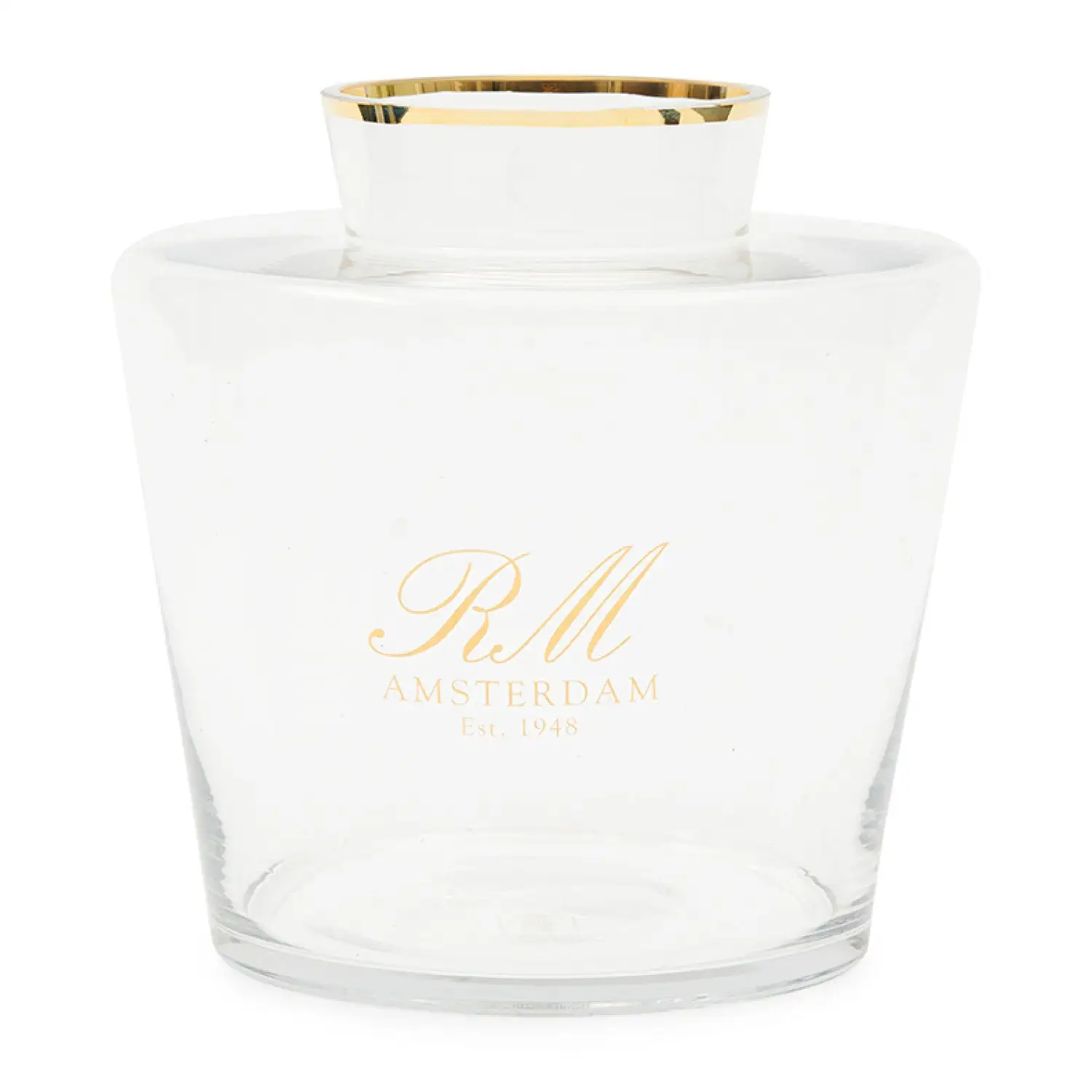 Display a low and wide bouquet festively on the table in this mouth-blown Classic Club Bouquet vase. The golden top edge and equally graceful golden letters turn a bunch of flowers into a party.