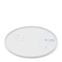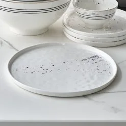 This white, generously sized porcelain dinner plate has an upright edge and black lettering with the text ‘Food is memories. The black and gold decal gives it a hint of cheerful elegance, and the details are made with a hint of real gold, so they stay beautiful longer. Combine the RM Dots & Stripes Dinner Plate with our matching tablecloths and napkins.